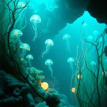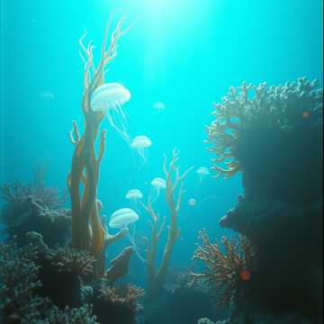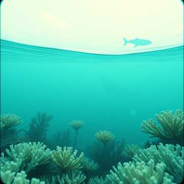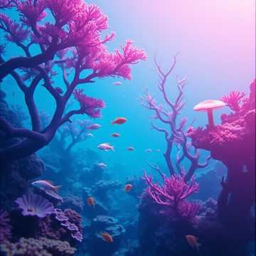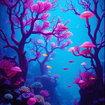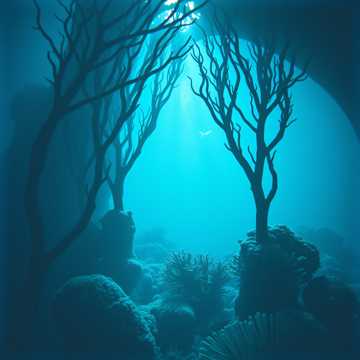 ambient new age, coral reef, underwater forest, diverse marine life, electric organ, ethereal strings, woodwinds, cinematic atmosphere, 70 bpm