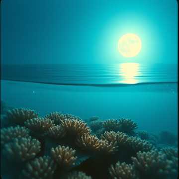 Slow oceanic new age soundscape built on swelling aquatic pads, distant choral haze, and a haunting lead cello that moves like a tide, Granular textures and soft mallet pulses suggest a living coral forest; bass is a gentle sub-swell, not a groove, Arrangement breathes in long, overlapping waves—sections blur, but intensity rises subtly at the midpoint and recedes into a faint bioluminescent shimmer at the end, ambient, slow, deep, cello, new age
