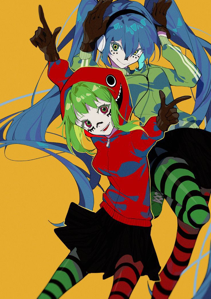 vocaloid trio [[[trio of 3]]], glitches glitch glitch a glitched backround dub step /