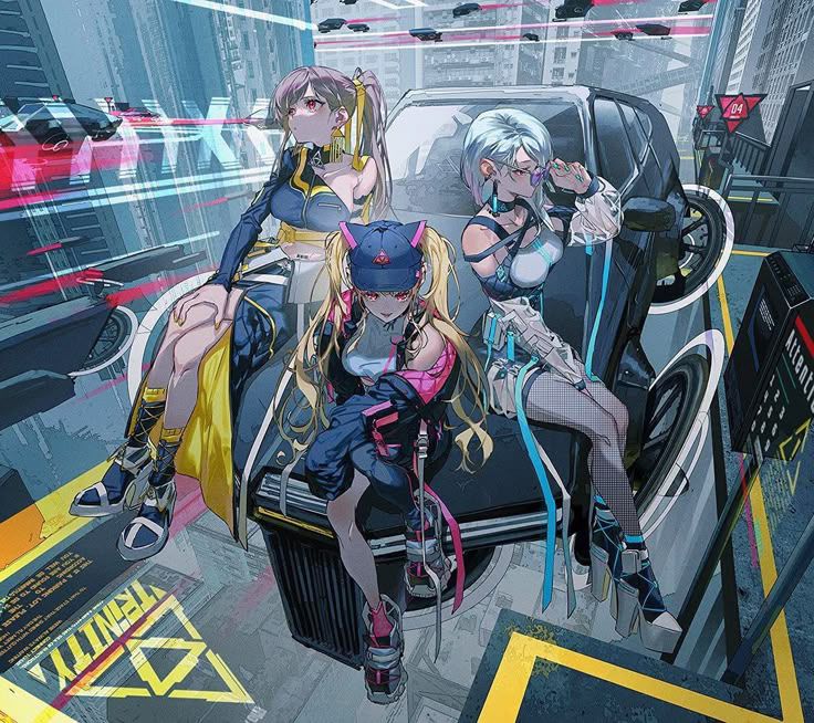 [[[Trio of three]]] female vocals neon 8-bit 808, electronic 3 ppl, rap