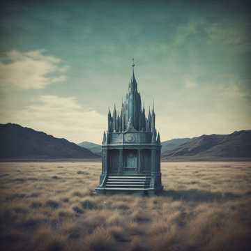A soundscape that evolves within a vast, sealed, pressure- ridden, restless ethereal texture, doted by cryptic metallic strikes, Rising from behind gravely, a somber but angelic southern gospel choir resonates to a staccato organ rhythm deepening the mysterious atmosphere, no drums, no guitar, no horns, The instrument sounds are techno, mechanical, and EDM; an intense church organ, and clapping sounds