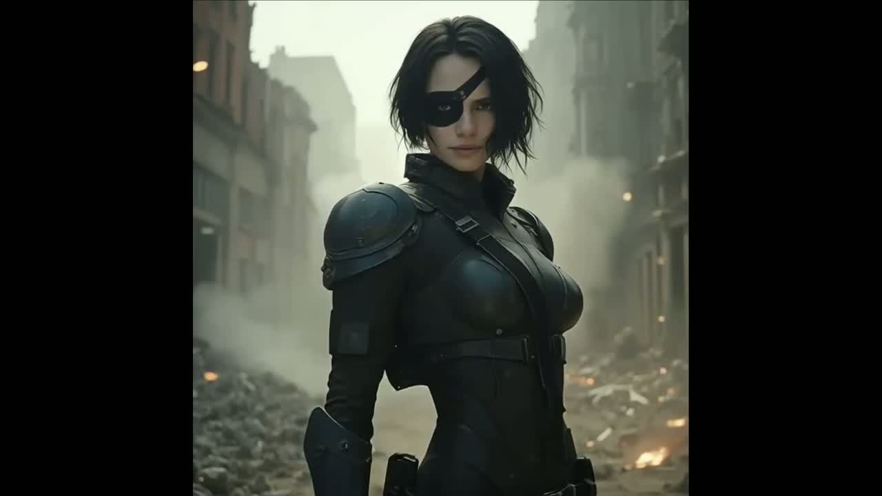 Low drones, metallic echoes, slow heartbeat-like kick, Rising strings swell as smoke clears — camera pans across ruins, A faint electric hum introduces tension, Build (0:30–1:15)