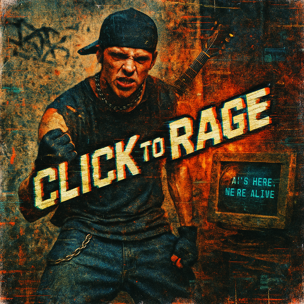 This song is an aggressive, defiant Nu-Metal track with a 90s rap-rock attitude, It fuses hard-hitting hip-hop beats with distorted guitar riffs, DJ scratches, and cocky, in-your-face vocals, The verses deliver rhythmic rap-style flows, while the choruses explode into shouted chants with gang-style energy, Lyrically, the song rebels against critics who dismiss AI-generated music, mocking their fear of innovation and defending creative freedom through technology, Song Description: aggressive, rap-rock, nu-metal, distorted guitars, DJ scratches, hip-hop metal, rebellious, glitch effects, build ups, drops, breakdowns
