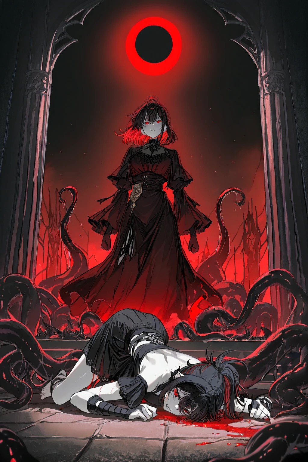 Tearout Drop, Dubstep, Dark Riddim, Glitch, Low whisper male vocals, ominous, distorted, Dark, abyssal, cinematic, goth, oppressive, Heavy distorted bass, eerie minor key