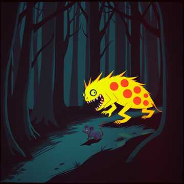 Fast-paced cartoon horror chase, extreme falsetto, theatrical villain, chaotic minion voices, exaggerated effects