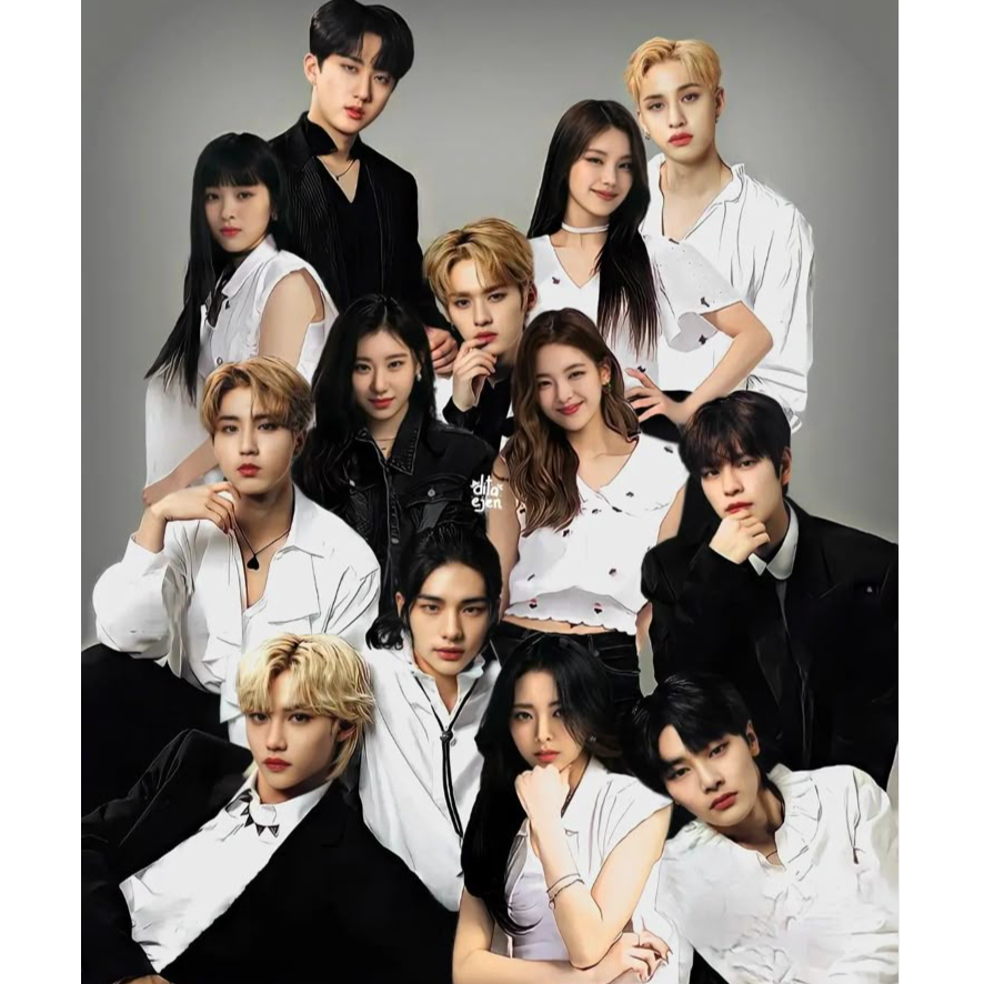 A confident, emotional K-pop co ed track mixing bright pop energy, attitude, and gritty edge, Use a smooth, flowy chorus with bright synth chords, light pop-rock drums, and airy reverb so the hook feels open and catchy, Verses should be minimal and tense with soft pads, then build into layered pre-chorus harmonies, Add a short rap break with trap 808s and sharp hi-hats, then return to a cinematic, uplifting final chorus with stacked vocals and light vocal chops, Overall vibe: empowering, youthful, bold, and performance-ready, Rora, Lia, Ryujin, Chaeryeong, Yuna, Rami, Asa, Ahyeon, and Chiquita have female voices, BangChan, Changbin, Han and Felix have male voices