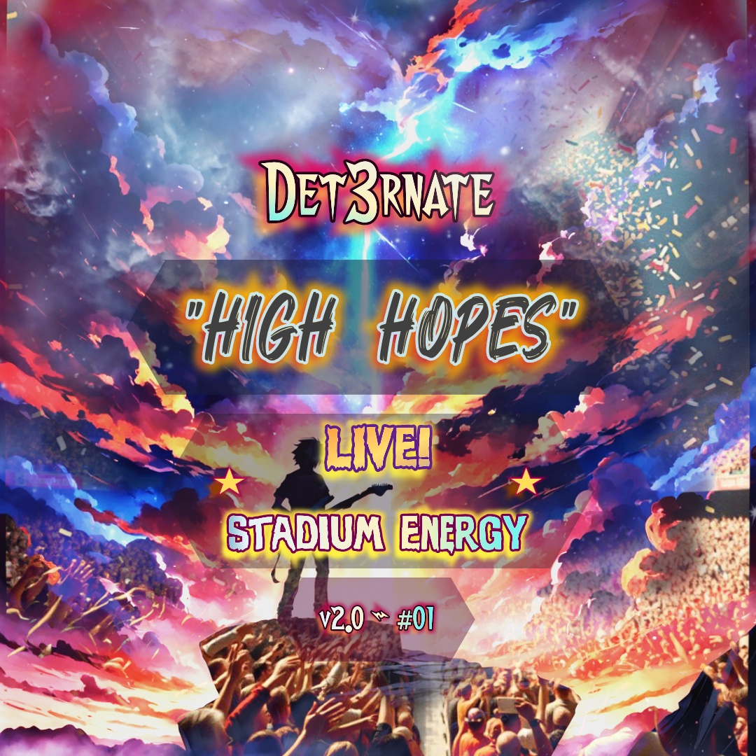 Live Stadium, Instrumental Metalcore, Live Intro, Continue with soaring dual lead guitar harmonies and palm-muted Chord progressions, rising drum grooves, Clean verse sections shift into powerful, anthemic choruses, layered with driving distorted power chords and dynamic transitions, The bridge includes a melodic solo section over half-time drums, while subtle synth pads add atmosphere, all arranged to highlight expressive guitar practice, Lossless Audio quality, crystal clear Audio sound, compression, No Guitar Leads, no keyboard, no synth leads, Rhythm focused, Emotional Evocative rising tension until climatic Peak, Slow and consistent Rhythm and tempo at 70 BPM in A Minor, Continues dynamic ascending and descending textures of the guitar chord Progressions, Final Major Chorus with Explosive energy, rising Full Orchestration Finale before softly transitioning to calming outro and ending with Big Waves of Applause, Live Stadium Energy, Live Concert, no vocals, no leads, det3rnate