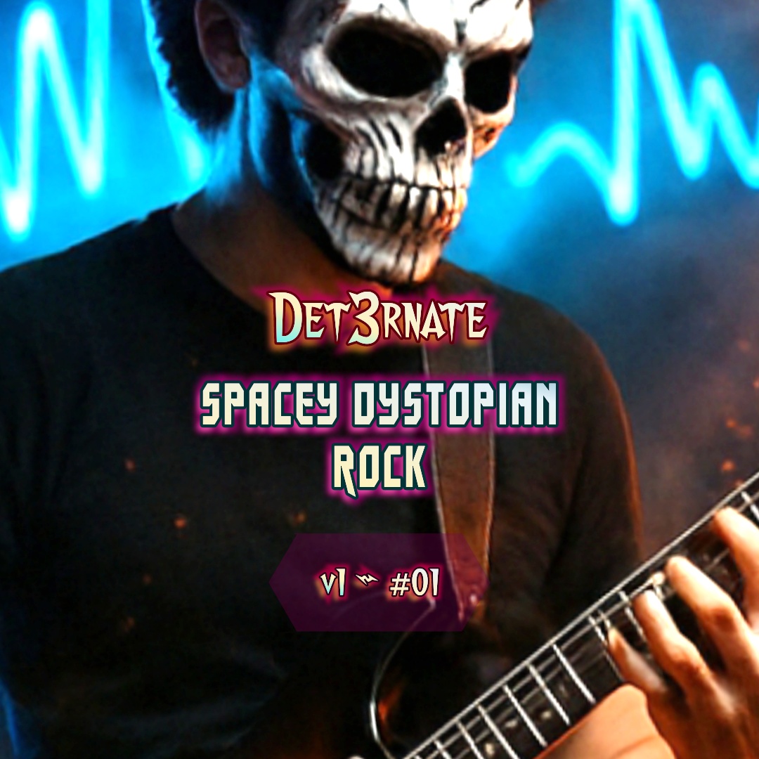 Low-pitched guitar riffs in Drop C#, syncopated and palm-muted, layered with sub-heavy distorted bass pulses, Mid-tempo acoustic drums with mechanical, breakbeat-inspired groove, Industrial glitch textures and static noise bursts, Atmospheric scratches, lo-fi piano stabs, and delayed guitar FX fill the breaks, Chorus-style sections drive with open power chords and a strong downbeat snare push, No melodies, no leads – rhythm and texture dominate, Ascending and Descending Rising Chord Progression Textures and consistent upbeat strumming patterns, elevating emotional evocative delivery infused with Atmospheric Deep echoing Reverb and Delay effects, BPM: 94, det3rnate, no synth leads, no vocals, Lossless Audio quality, crystal clear Audio, det3rnate, ‑vocals, ‑singing, ‑lyrics, ‑Fusion, ‑opera, ‑classical music, ‑Death Metal, ‑Neoclassical, ‑Bluegrass, ‑jazz, ‑jazz, ‑flamenco, ‑Spanish, ‑dance, ‑punk, ‑blues, ‑country music, ‑gothic, ‑folk, ‑lead parts, ‑Arpeggios, ‑funk, ‑Arpeggio, ‑wind solo, ‑Guitar Leads, ‑Arpegiated, ‑synth solo, ‑piano leads, ‑screamcore