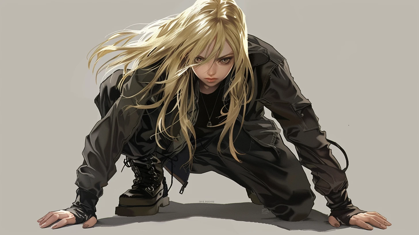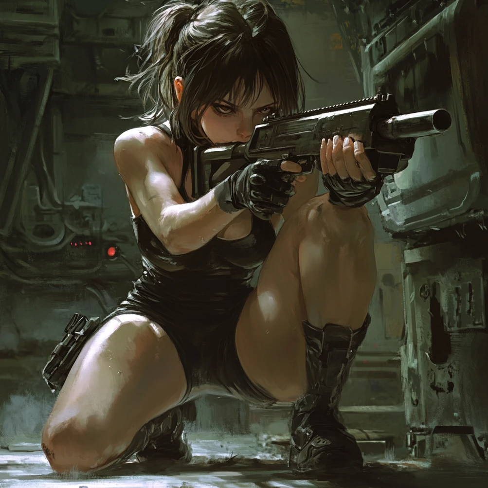 A fast-paced, dark and stylish K-pop track with trap pop and electro dance influences, designed to accompany a high-speed combat scene featuring a stealthy female spy unit; the song is performed by four female vocalists, each with distinct parts and vocal textures; tempo is fast (150–165 BPM), driven by punchy trap beats, crisp hi-hats, and deep 808 bass that pulses through the mix; synths are sharp, futuristic, and glitchy, adding tension and cinematic flair, The vocal arrangement must include clearly defined solo lines, alternating phrases, and layered group sections, Member A opens with a confident, mid-low tone; Member B follows with a slightly higher, playful but sharp delivery; Member C handles the pre-chorus with a smooth, mysterious voice; Member D leads the post-chorus with a bold, rhythmic style, The chorus is sung in unison by all four members with tight harmonies, Include a rap bridge split between Member A and Member D, delivered in a rapid, flat tone with precise articula