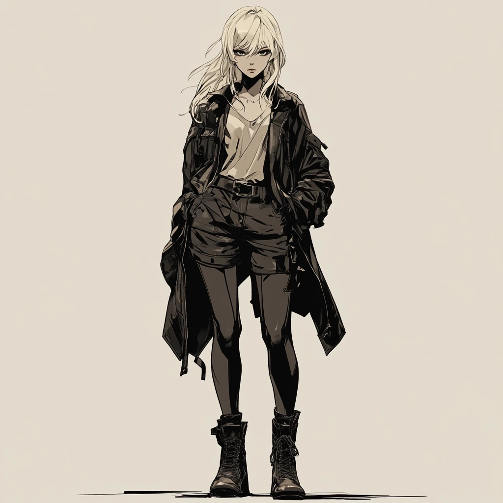 A slow, melancholic fusion of trip-hop, indietronica, and ambient pop set in a post-apocalyptic desert world where cities have turned to sand; the song follows a human-like android built as a weapon, now wandering alone through ruins, reflecting on fading memories and the absence of purpose; female vocals are low, husky, and emotionally restrained, with clear pronunciation and no humming or adlibs; the instrumental features deep, pulsing electronic bass, minimal drums with soft textures, lo-fi synth layers that shimmer like heatwaves, and ambient pads that evoke moonlight and dust; the mood is quiet, cinematic, and introspective, with a sense of mechanical sorrow and forgotten humanity