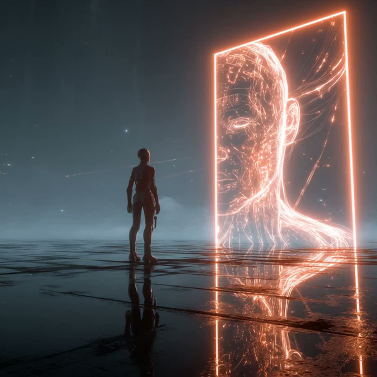 Intro: short synth riff + robotic voice “Happy?”