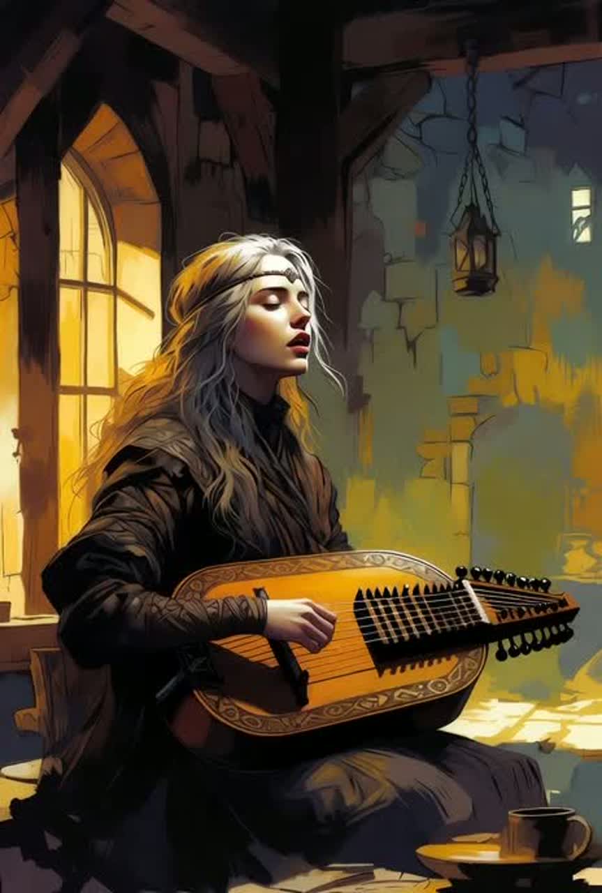 hurdy-gurdy (vielle à roue) very subtle, no piano, no drums, no bass, Minimalist, organic, tavern bard atmosphere