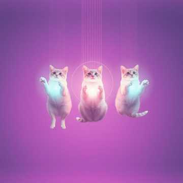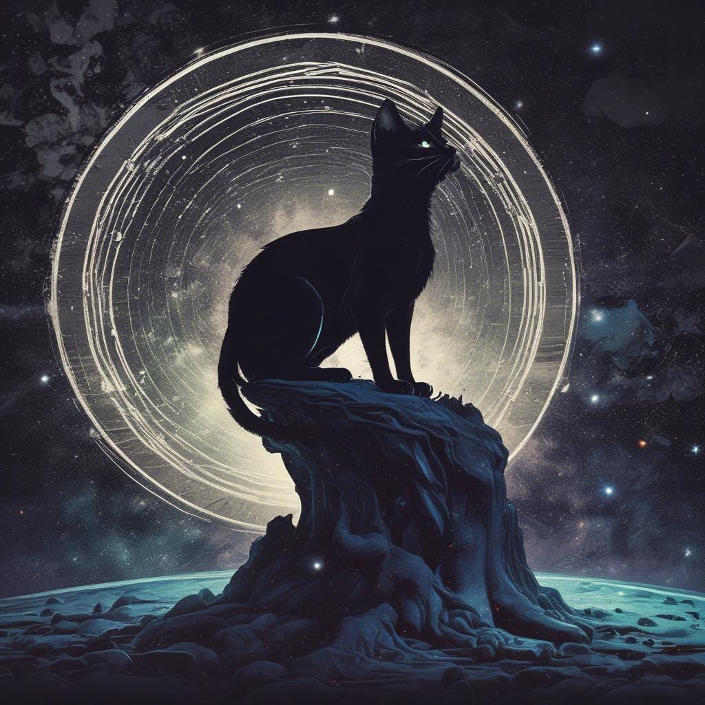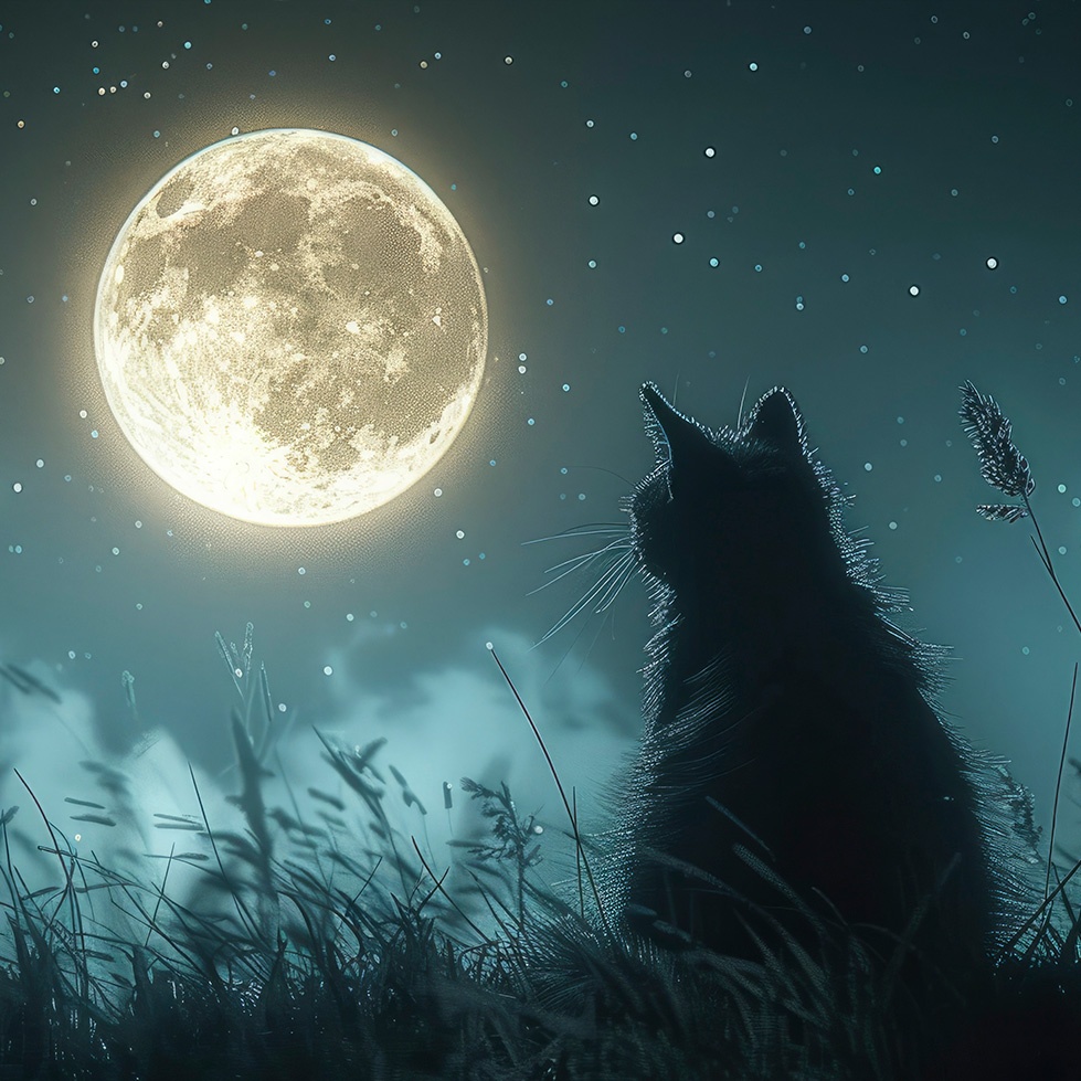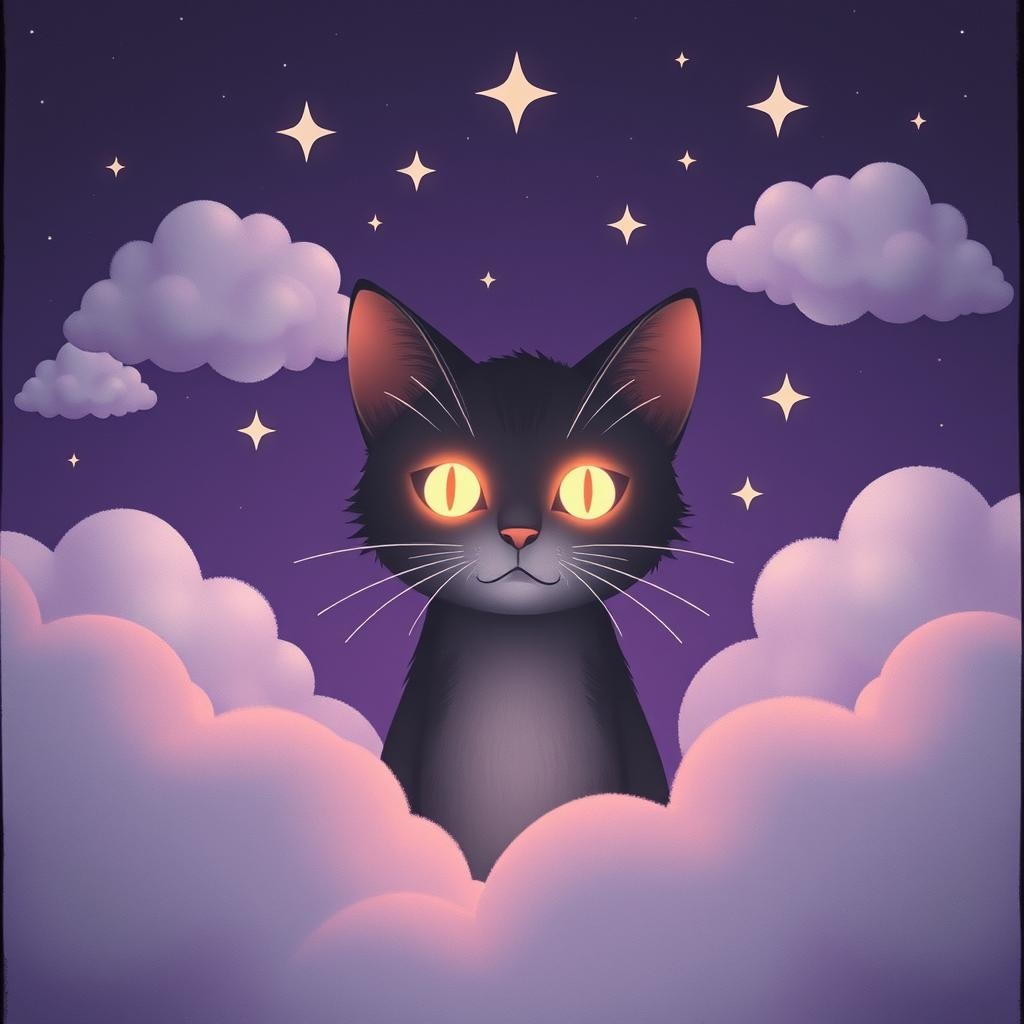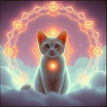 Mystical feline chakra healing music, deep meditative tones with soft purring vibrations, ethereal harp, soothing chimes, and resonant cat-like frequencies, A balance of energy, tranquility