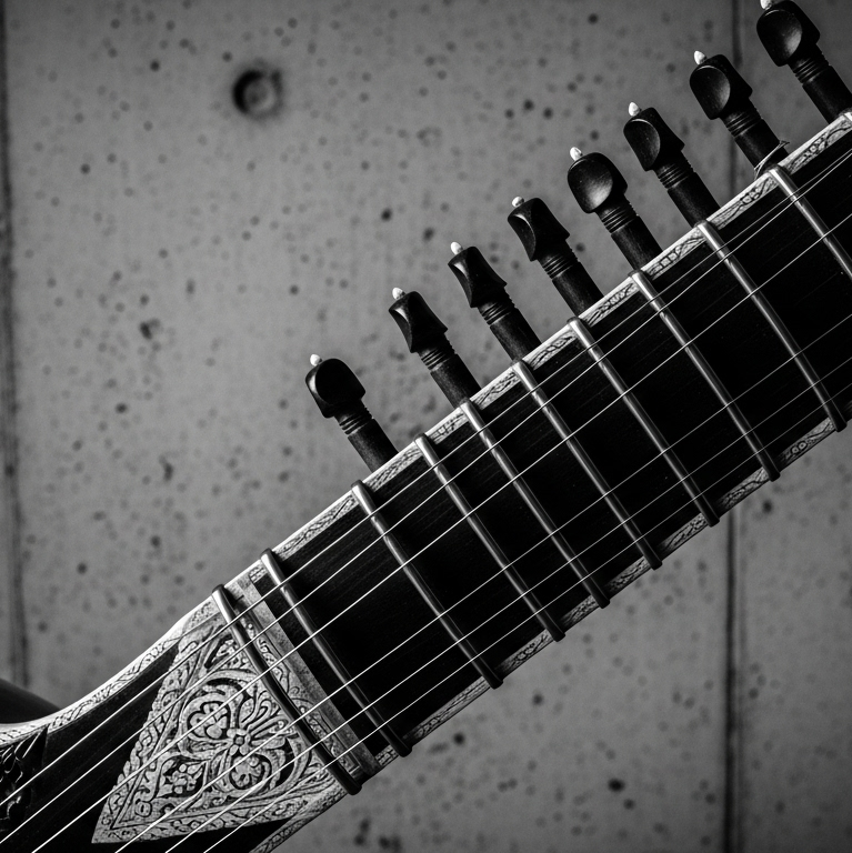 An experimental instrumental, Song length is 5 minutes, Very slow tempo (~50 BPM), A fusion of a meditative Indian Raga with heavy, dark industrial drone music, The track begins with a serene, hypnotic drone from a tanpura and a slow sitar melody, creating a deep meditative state (Delta Wave entrainment), It progressively deconstructs as the organic instruments are replaced by a menacing industrial drone and a slow, heavy mechanical beat, The finale is a chaotic, noisy collapse, ‑fast, ‑upbeat, ‑rock, ‑pop, ‑song, ‑vocals, ‑happy, ‑simple, ‑clean