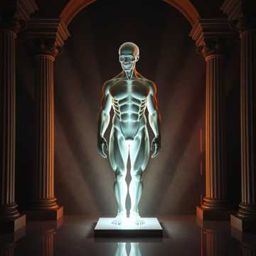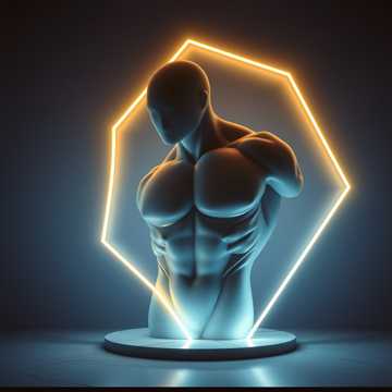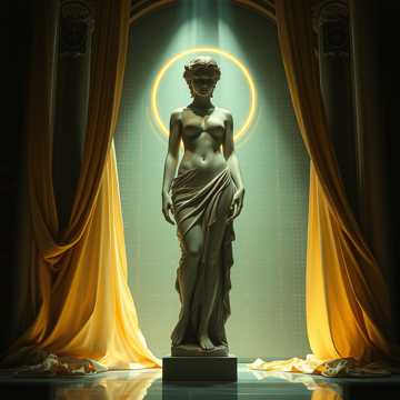 The musical style is a crossover genre, blending classical and futuristic elements, philosophical and muscular aesthetics, The string arrangement features double bass and viola, creating a sculptural feel and muscular tension, Organ or harpsichord: echoing the sacred atmosphere of ancient Greece and the Renaissance, Harmonic progressions: employing church modes (Dorian, Phrygian), adding a philosophical and ritualistic feel