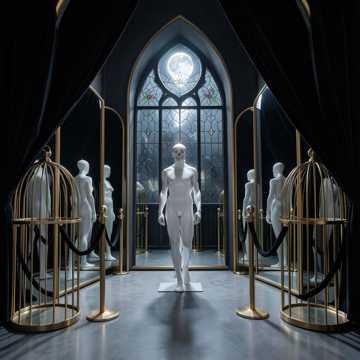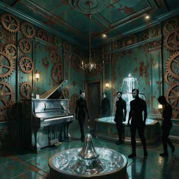 baroque-core, harpsichord, industrial beat, cinematic orchestral, aggressive, dark palace intrigue, pipe organ, cold low vocals, 100 bpm