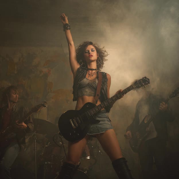 Cinematic, 90–110 BPM, E♭ Minor Key, Female Rap, Trap-style hi-hats & kicks layered with live rock snares and crash cymbals, Add snare rolls + risers for suspenseful builds, Use tearout dubstep drops for energy flips mid-verse, Confident, clever, slightly theatrical, Flow, Dance