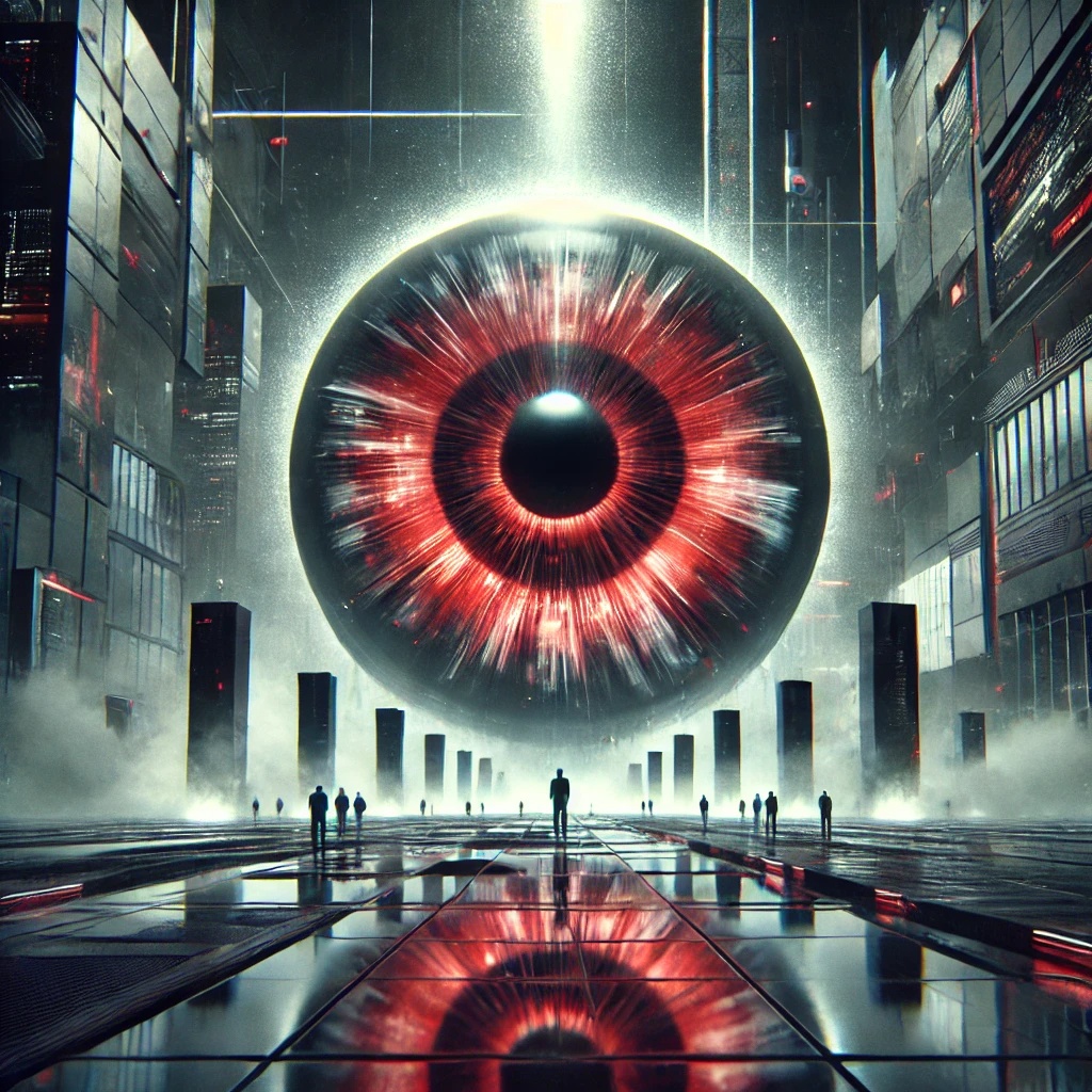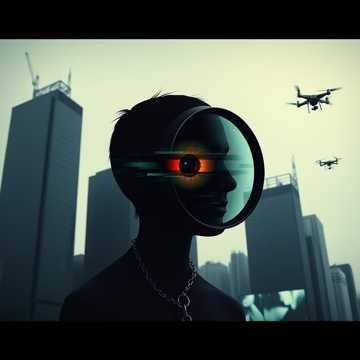 Dark cinematic electro-pop duet with dystopian lyrics about AI-controlled society, Inspired by Orwell’s 1984, reimagined in 2034 with glitch synths, digital oppression and poetic defiance
