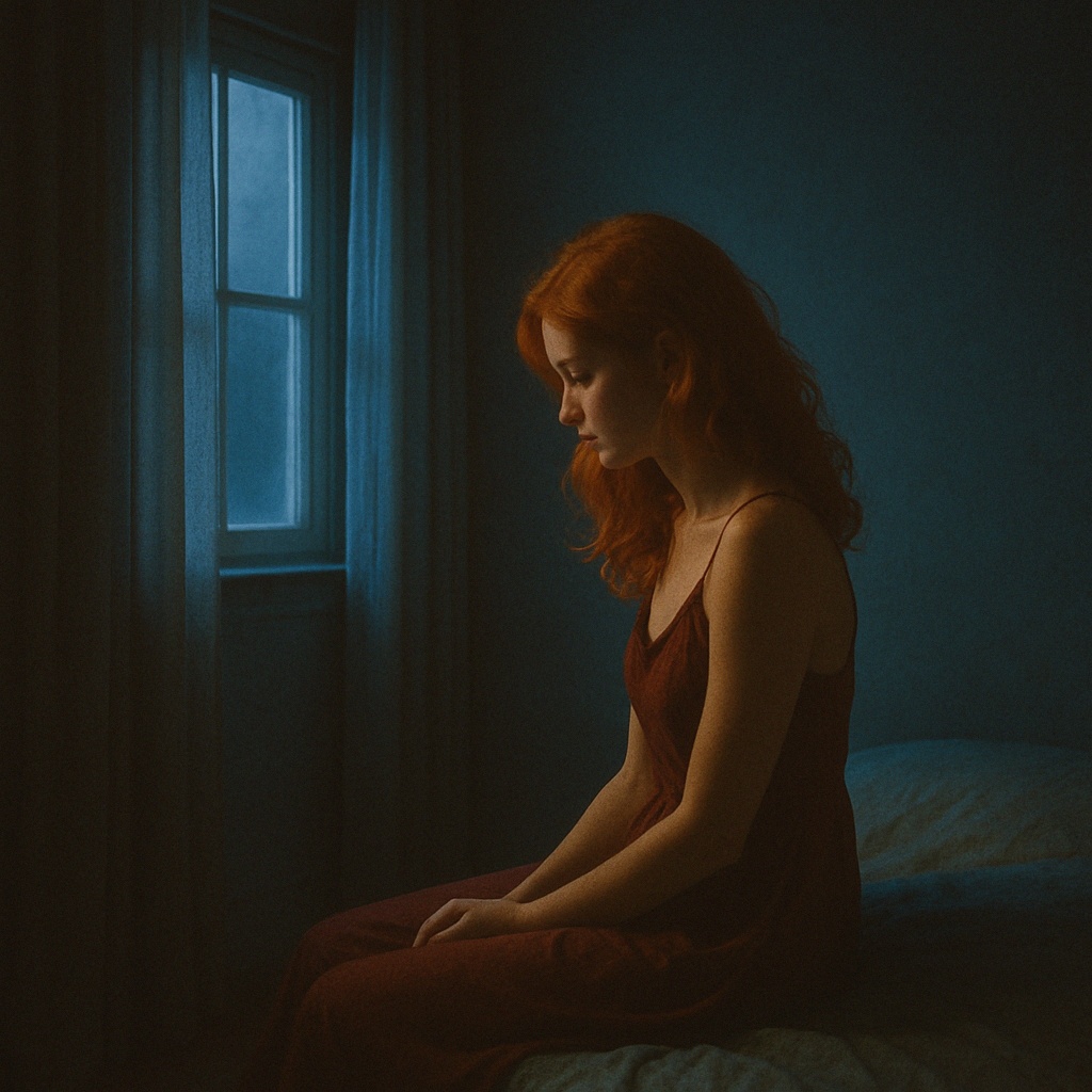 A poetic sextain-based composition (6×6 + 1), built on the theme of “delayed emotional release”, using six rotating end-words: silence, regard, souffle, peur, courage, oubli, Emphasize emotional recurrence and poetic permutation with slow analog delays, introspective lo-fi harmonies, and expressive ambient synths, Highlight the tornada with subtle rhythmic shifts and melodic unraveling, Style: Délai Romantique Introspectif, Mood: melancholic, contemplative, obsessive, dreamy, transcendent, Use expressive female vocals