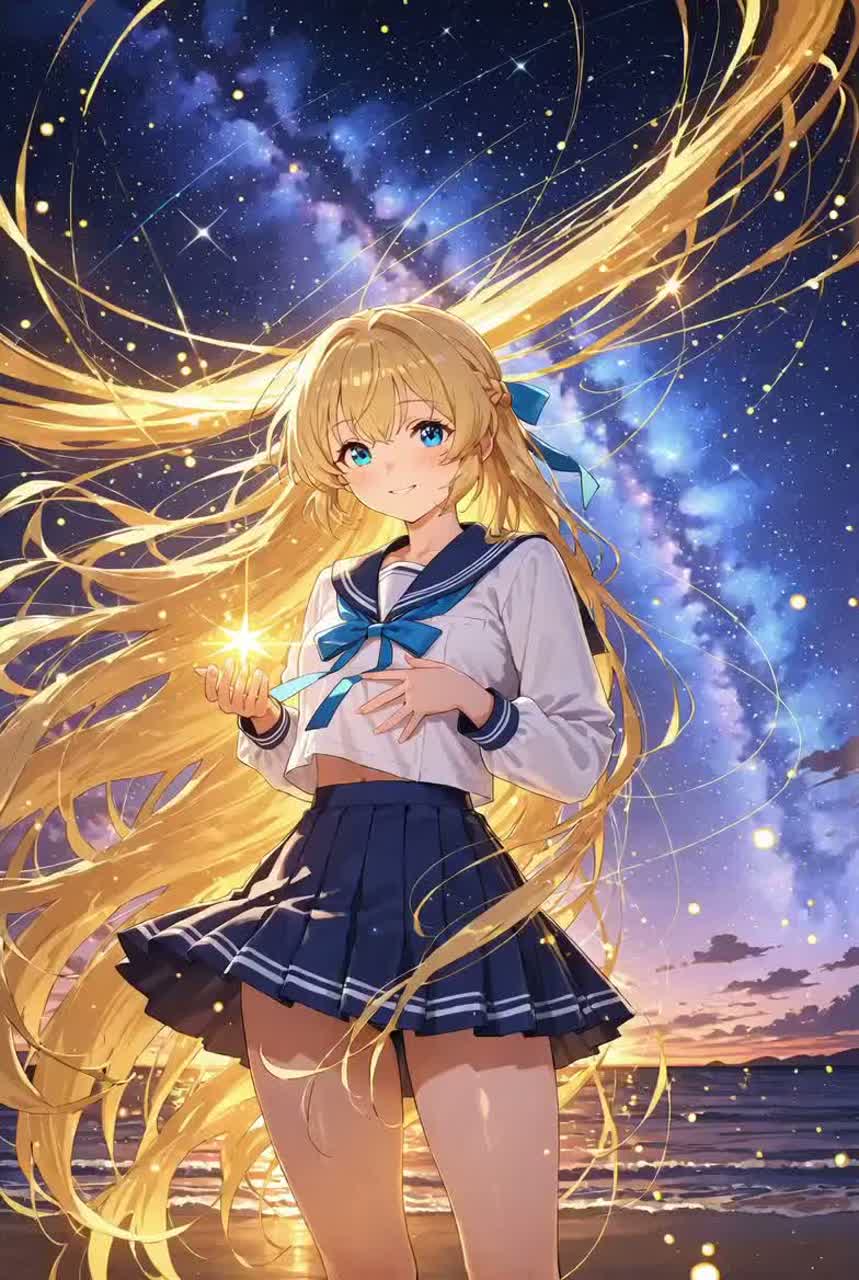 euphoric fast-tempo melodic hard rock with a clear airy cute and soaring and melancholic female vocal, sharp edgy rhythm guitars, uplifting major-key riffs, tight punchy drums, bold emotional guitar leads with expressive bends, shimmering clean-to-crunch transitions, sparkling layered female harmonies, warm analog-inspired tone, bright night-city ambience, and a bittersweet heroic atmosphere