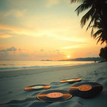 60's Library Music, sitting on the beach, waves, summer, sun, lo-fi, ambient, blues