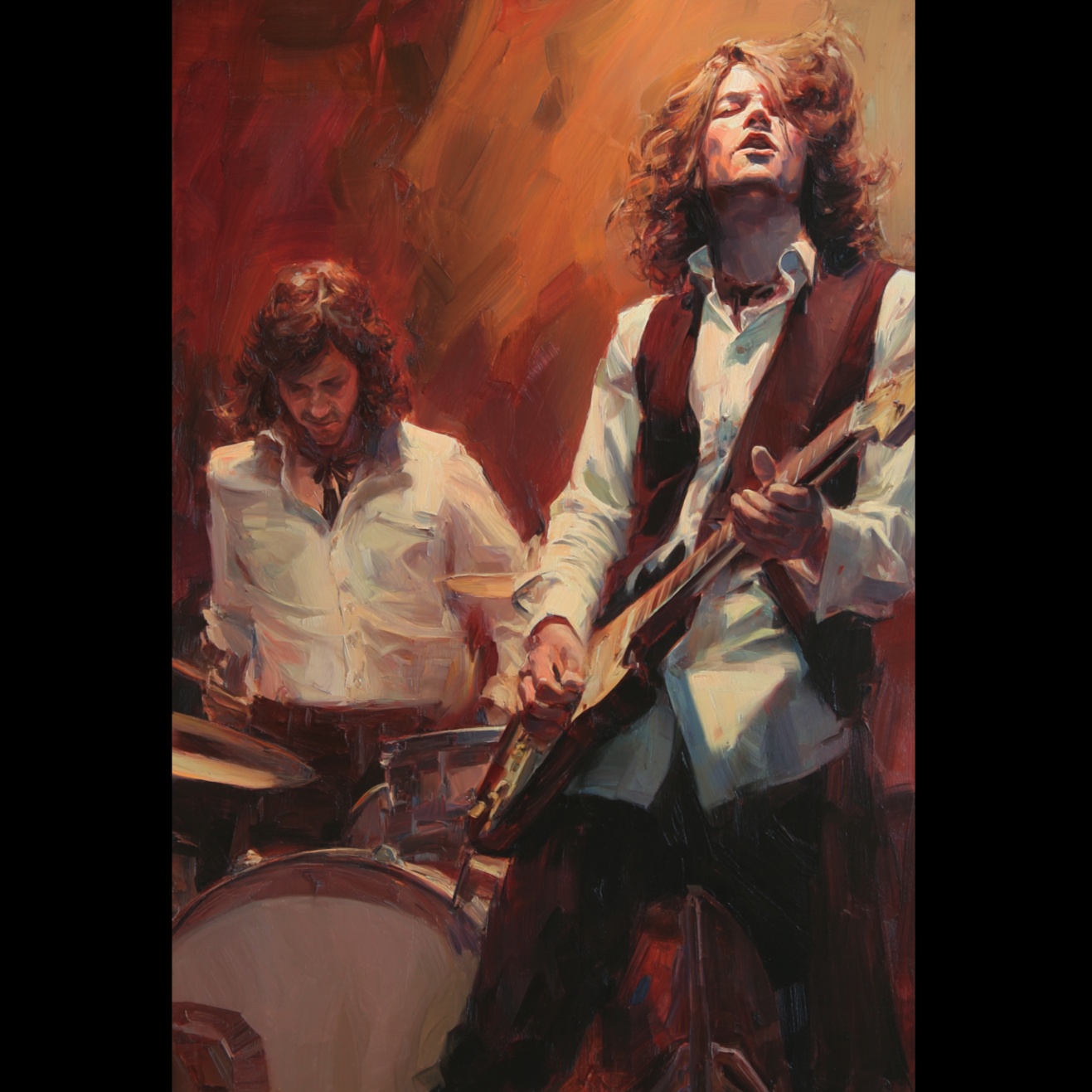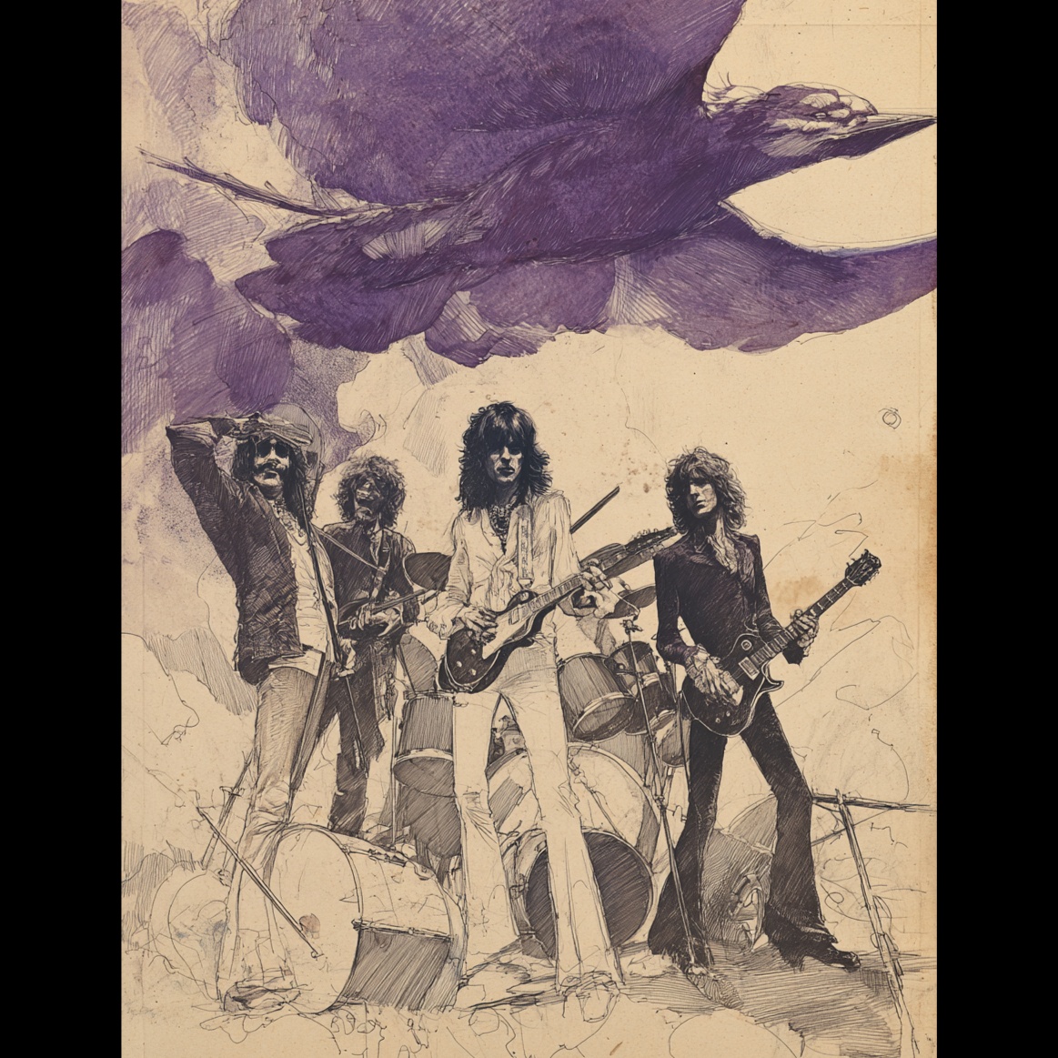 Organ: The prominent use of a distorted organ, like Jon Lord of Deep Purple, is crucial for the sound, Guitar: The guitar should have a blues-rock edge, with fast, melodic solos, Rhythm: The rhythm section (drums and bass) needs to be powerful and driving, setting the pace, Vocals: The vocals in the style of Ian Gillan, powerful, soaring, and slightly raspy, Lyrics: The lyrics should have a sense of cosmic imagery and rebellious spirit, Tempo: The song should be played at fast tempo