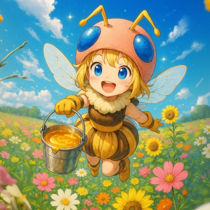 A Japanese children's song in a major key, featuring a female vocalist with a clear, youthful tone, The instrumentation includes piano, strings, and percussion, creating a light and whimsical atmosphere, The song has a moderate tempo and a simple, memorable melody, The piano provides a gentle accompaniment, while the strings add warmth and depth, The percussion is subtle, primarily marking the beat, The vocal performance is expressive, conveying a sense of innocence and wonder, The song structure is verse-chorus based, with a clear progression of musical ideas, The production is clean, with a balanced mix that highlights the vocals and melodic instruments, There are no complex chord progressions or dissonant harmonies, maintaining a bright and accessible sound