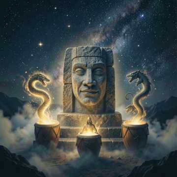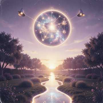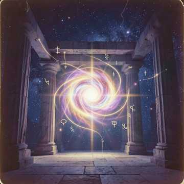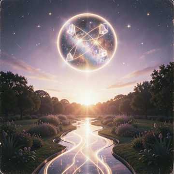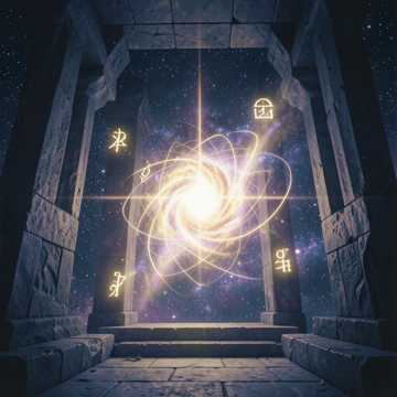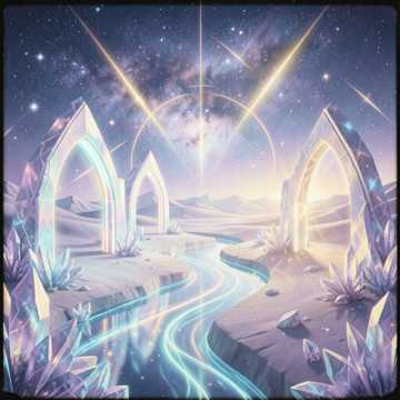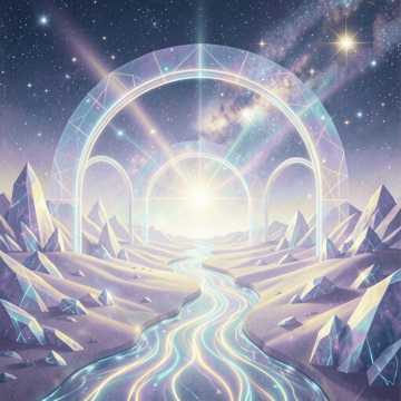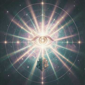 Dark progressive vocal trance, vast cosmic pads, shimmering and slowly evolving arpeggios, profound spiritual male vocals, ethereal wise female vocals, deep resonant sub-bass, minimalist celestial percussion, 110 bpm, cosmic wisdom, inner peace, profound revelation, timeless knowledge