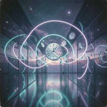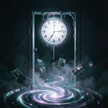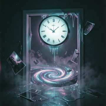 Dark progressive vocal trance, time-warped pads, shimmering delayed arpeggios, disorienting male vocals, ethereal guiding female vocals, deep unsettling bass, subtle rhythmic shifts, 128 bpm, temporal distortion, non-linear experience, cyclical dream