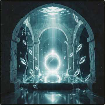 Dark progressive vocal trance, profound evolving pads, intricate weaving arpeggios, introspective male vocals, ethereal guiding female vocals, deep grounding sub-bass, steady but subtle percussion, 120 bpm, identity re-formation, post-transcendent peace, enlightened consciousness