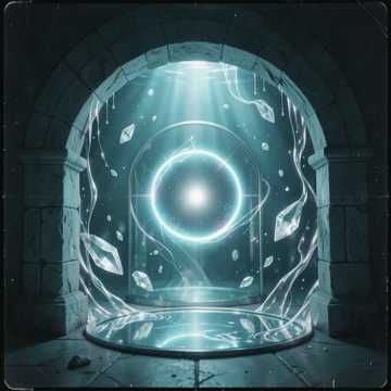 Dark progressive vocal trance, ancient resonating pads, profound ethereal arpeggios, spiritual male vocals, omnipresent divine female vocals, deep pulsing sub-bass, ceremonial and sparse percussion, 115 bpm, mysterious entity, cosmic wisdom, awe-inspiring revelation