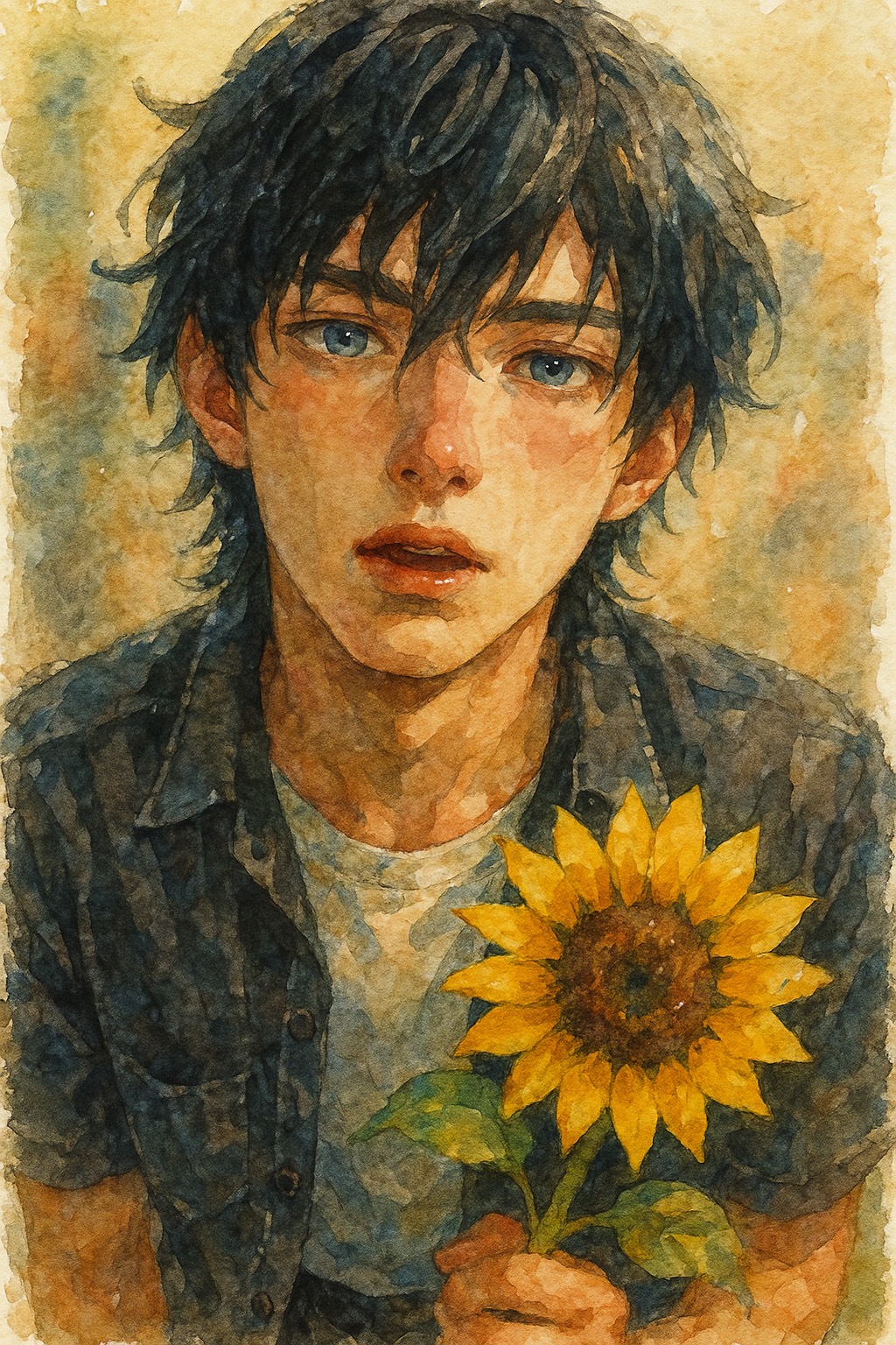 A mid-tempo fusion of alternative Japanese pop, emotional indie rock, and glitchy poetic hip-hop, Performed by a young male vocalist with a guitar and a hidden truth, his voice sounds just past adolescence—gentle, honest, and slightly fragile, Like a clown onstage, he performs with a smile, but beneath the mask is a boy still learning how to speak his truth, Blend raw electric guitar riffs with introspective melodies, light glitch textures, and steady organic beats, Let the verses feel like quiet monologues, while the chorus bursts with raw emotion, Avoid robotic or over-processed vocals—keep the voice real, with breath, cracks, and softness, Subtle synths or shimmering textures may appear like emotional static or fading memories, The atmosphere should feel personal and cinematic, like watching someone laugh with tears still in their eyes, It's a song for those who perform daily, yet long to be understood for who they are beneath the stage lights