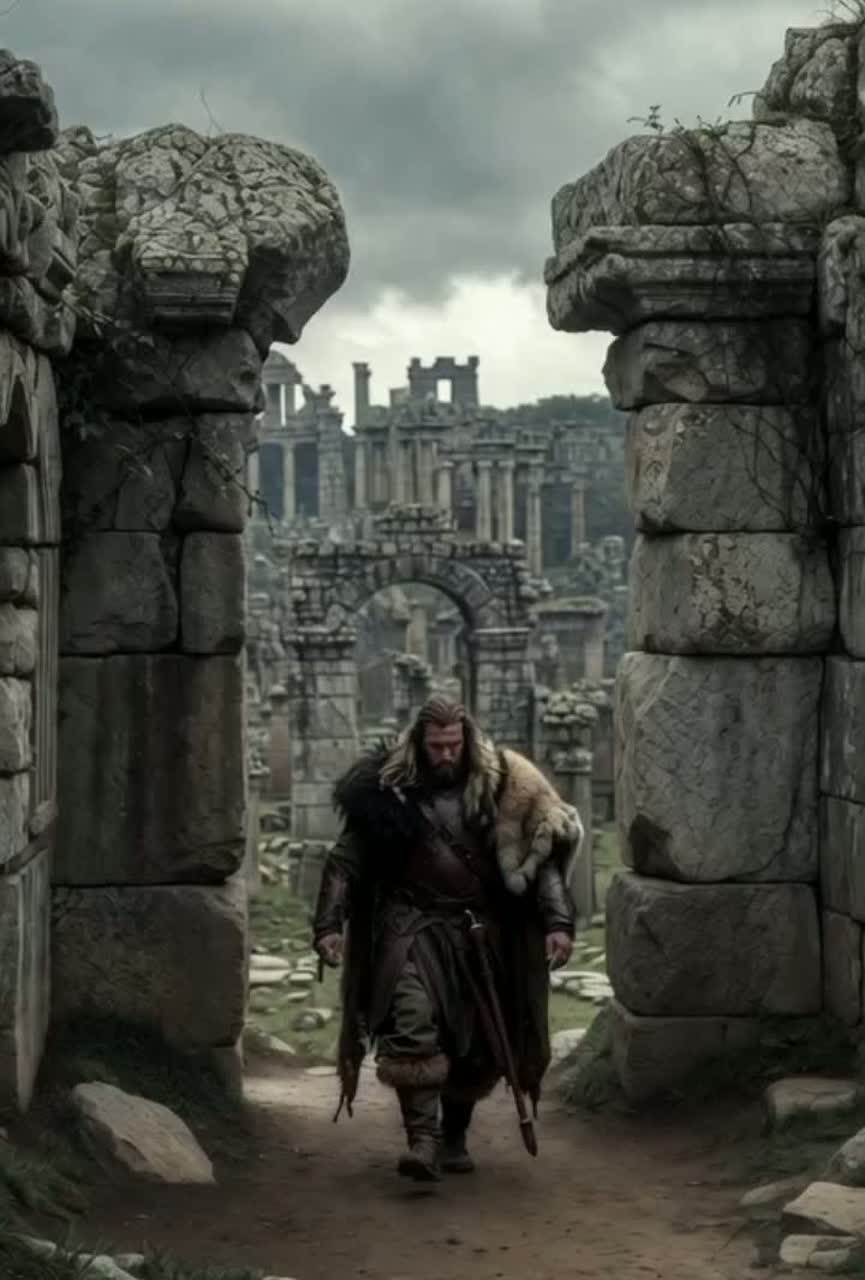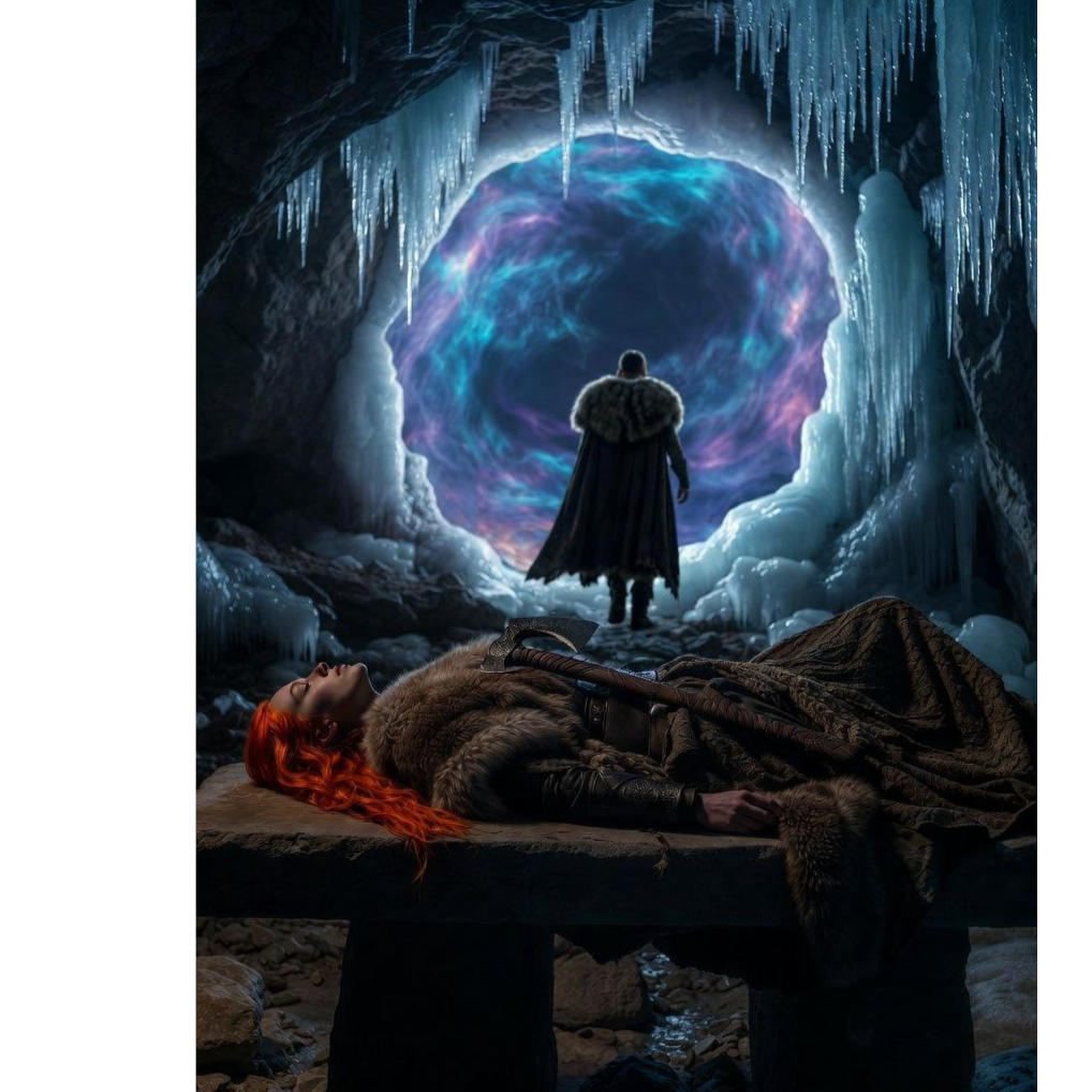 Tempo 82 BPM, Drop B, Dual-vocal: baritone clean × low growl, Mood: tragic, epic, transcendental, ancient, Thick distorted guitars with melodic twin leads; fretless bass, deep toms, slow double kick, Clean arpeggios and acoustic layers in intros/outros, Hammond pad, orchestral choir (low male voices), occasional flute or kantele for Nordic color, Tone: dark amber mids, analog warmth, mild saturation, Reverb-heavy atmosphere with wind and thunder FX, Structure: Intro, Verse 1, Chorus, Verse 2, Bridge, Final Chorus, Outro, Vocal blend: sorrowful clean voice with long phrases, deep growl contrast, emotional duet in choruses, Dynamic transitions between doom heaviness and melodic clarity, Overall feel: melancholic yet majestic, ancient-spiritual, echoing Finnish myths of death, rebirth, and nature’s eternal cycle