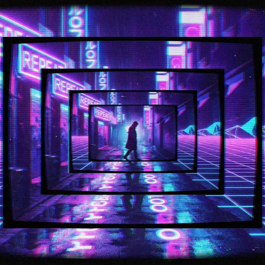 An extremely dense shoegaze track built on an overwhelming wall of sound, with multiple layers of heavily distorted, feedback-saturated guitars bleeding into each other, Vocals are low in the mix, treated as an indistinct texture rather than a lead, heavily blurred with reverb, delay, and modulation, Drums are subdued and partially obscured, while the mix feels compressed, smeared, and immersive, creating a disorienting, dreamlike déjà vu atmosphere, Sections transition almost imperceptibly, maintaining a constant sonic flood rather than clear dynamics