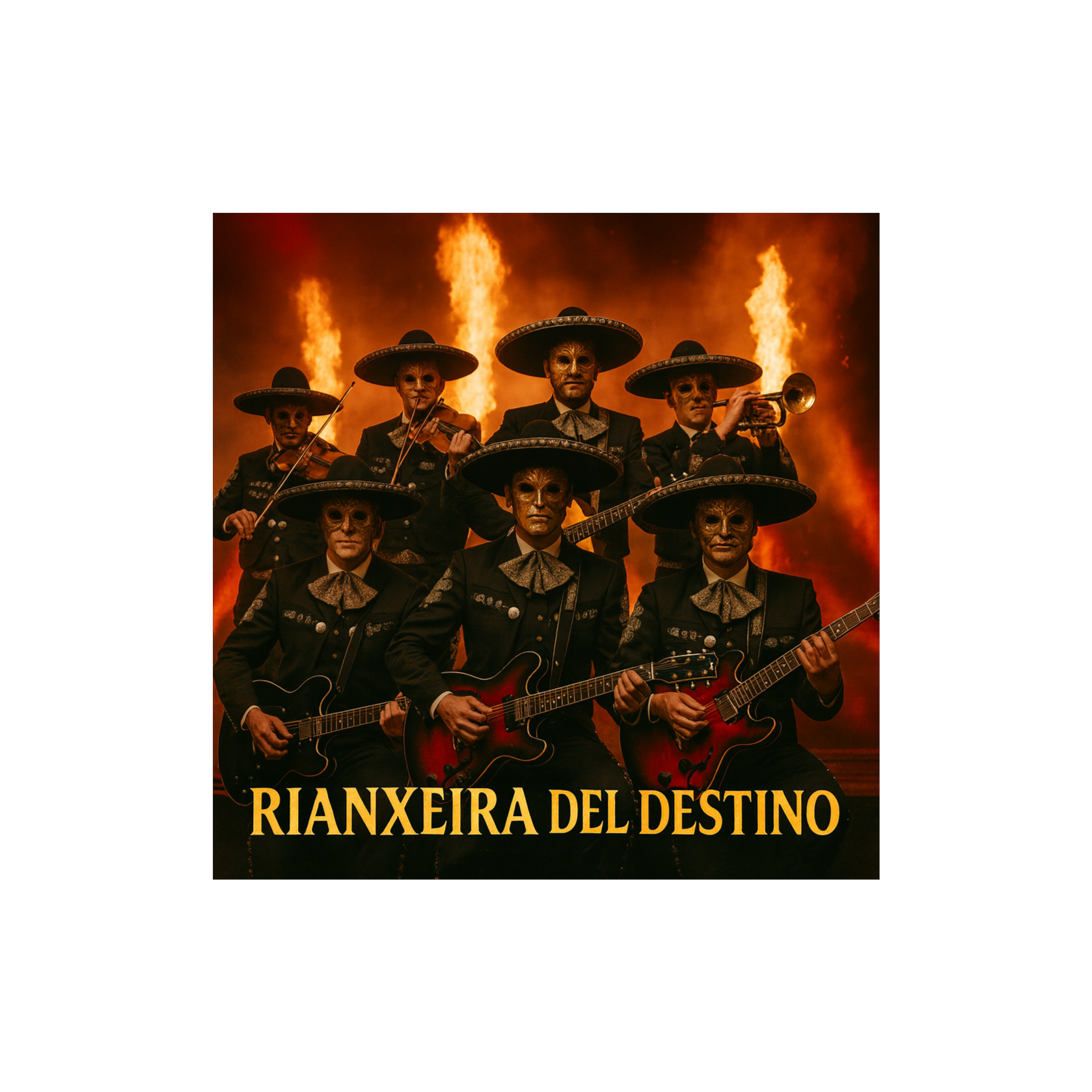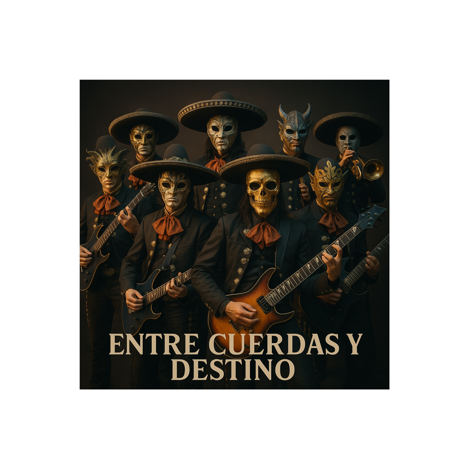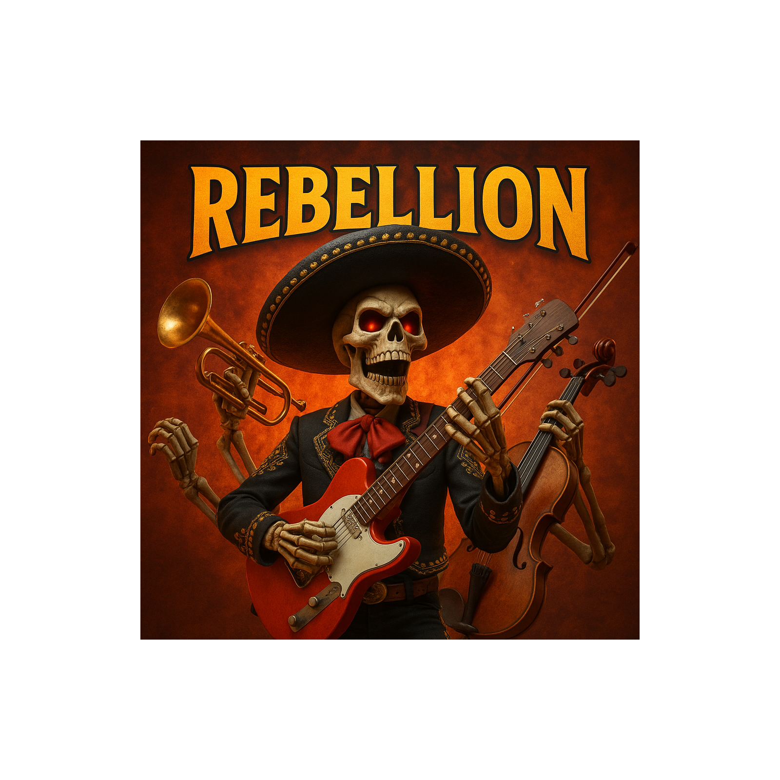 Intro: Ska-punk rhythm + mariachi trumpets/violins + heavy riff, Verses: Skanking guitars + brass stabs + rebellious vocals, Pre-Chorus: Palm-muted riffs + bass groove + violin layer, Chorus: Epic blast, metal riffs + mariachi brass/strings + gang vocals, Bridge: Reggae-ska break → heavy riff + soaring violin, Solo: Melodic guitar + mariachi violin trade-off, Outro: All styles collide, huge collective shout