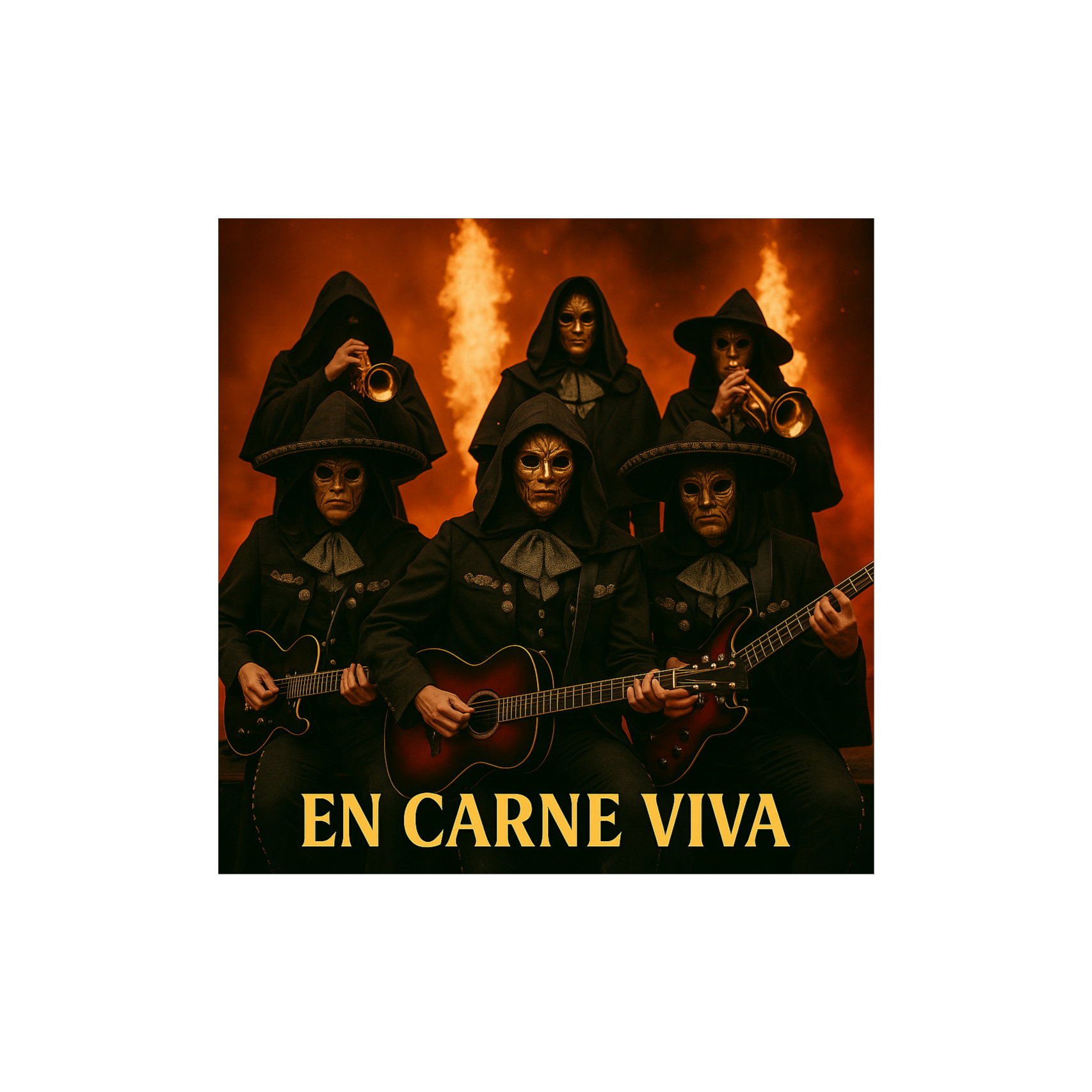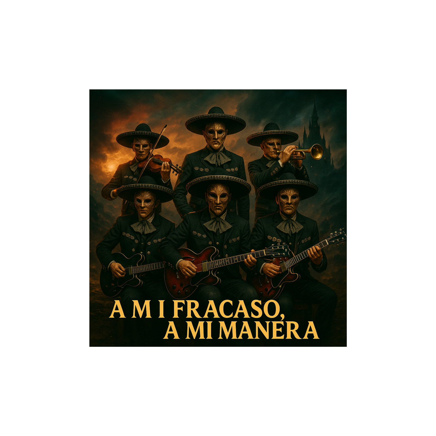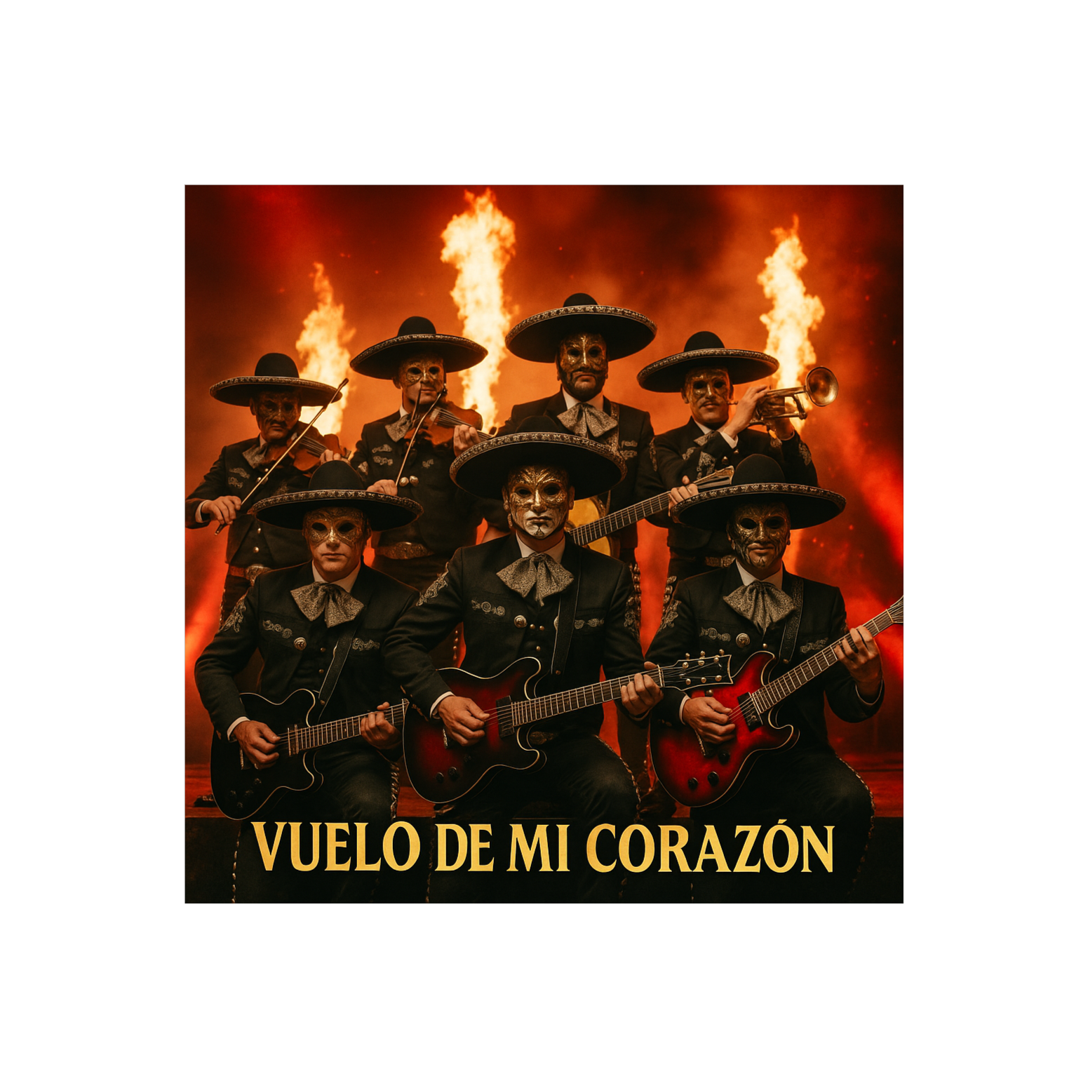 Intro: Ska-punk rhythm + mariachi trumpets/violins + heavy riff, Verses: Skanking guitars + brass stabs + rebellious vocals, Pre-Chorus: Palm-muted riffs + bass groove + violin layer, Chorus: Epic blast, metal riffs + mariachi brass/strings + gang vocals, Bridge: Reggae-ska break → heavy riff + soaring violin, Solo: Melodic guitar + mariachi violin trade-off, Outro: All styles collide, huge collective shout