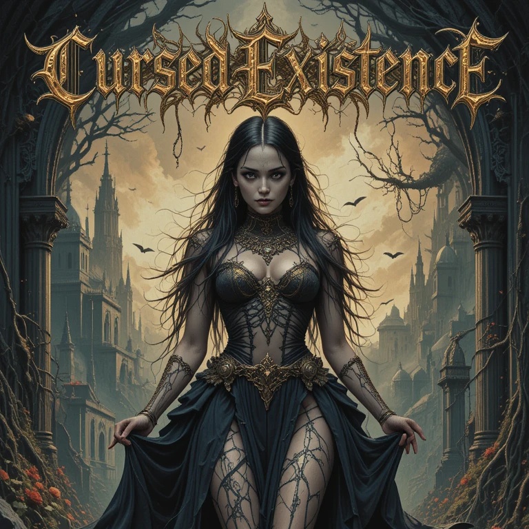Doom Metal slow keyboard harps violin bass, classical cello female vocals male vocals guttural
