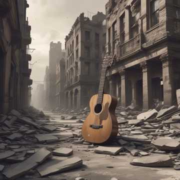 post-apocalypse, guitar, dark atmosphere, rock, war, romantic