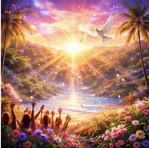 Reggae Reggaeton Worship Fusion, Dancehall Bounce Groove, Afro Caribbean Rhythmic Bassline, Latin Percussion Layers, Island Guitar Skanks, Deep Sub Bass Pulse, Bright Piano Stabs, Uplifting Synth Atmosphere, Male and Female Duet Vocals, Melodic Hooks, Call and Response Chorus, Joyful Spiritual Energy, Festival Ready Praise Sound