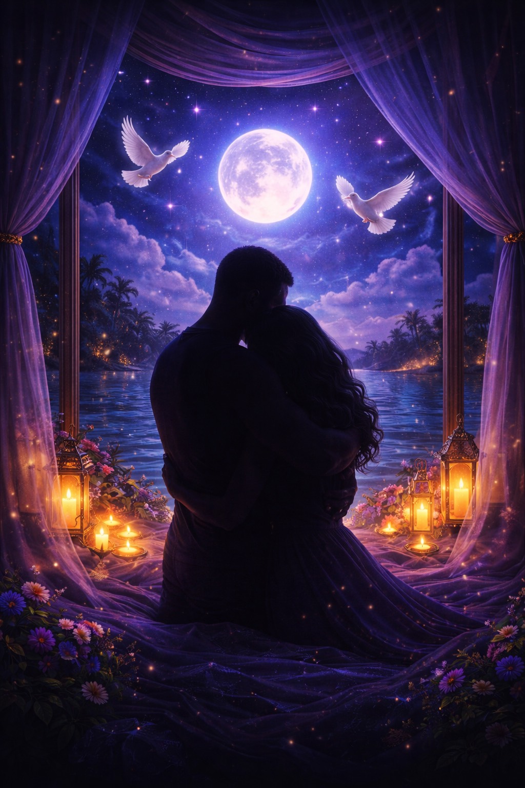 Romantic Intimate R&B Duet with Light Melodic Rap, Male Dominant Warm Baritone Lead, Soft Ethereal Female Harmonies, Sensual Slow Groove Tempo, Deep Sub Bass, Smooth 808 Pulse, Gentle Trap Percussion, Lush Rhodes Piano Chords, Ambient Night Atmosphere Pads, Subtle Electric Guitar Textures, Emotional Vocal Runs, Cinematic Reverb Space, Spoken Word Outro, Soft Scripture Whisper Layer, Devotional Covenant Love Theme, deep