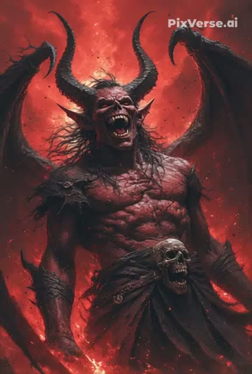 Epic Symphonic Dark Metal, with thundering drums, heavy guitars, and epic choirs, Dark, atmospheric soundscape with orchestral layers, powerful riffs, and a sense of burning ruins and ancient wrath, Intense, majestic, and haunting