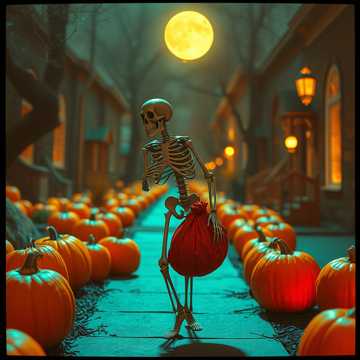 Acapella single deep creepy and scratchy male voice like something out of Nightmare Before Christmas, percussion with bones being tapped together and grinding, only one singer, no other instruments or accompaniment, No harmonized vocals, ‑instruments