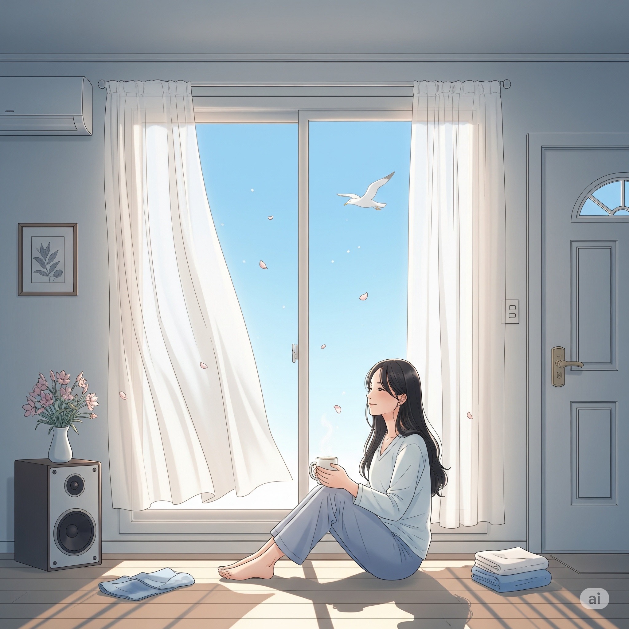 Acoustic Fingerstyle Guitar, Chillhop textures, and a sense of gentle emotional containment, feel like a space where everything is allowed to happen—wind, stillness, movement, waiting, It’s not trying to “guide” the emotion, but simply hold it, Tender, unhurried, unjudging, • Fingerstyle guitar (light brush-stroke feel, warm low tones)