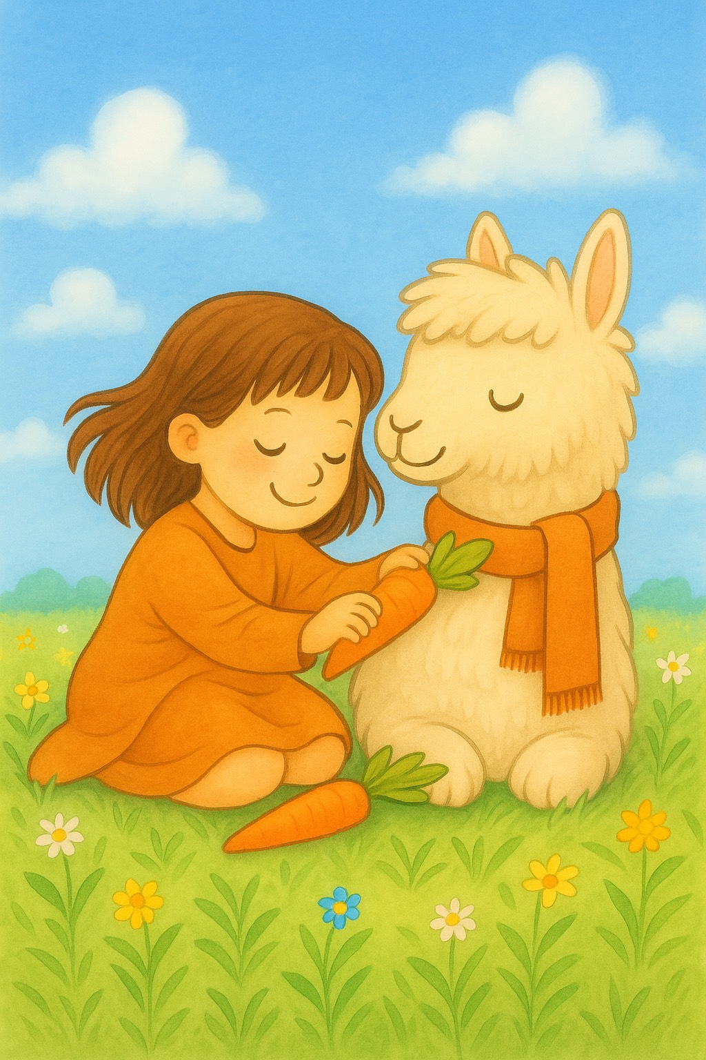 A gentle children’s song in 4/4, 25–30 BPM, pure and soft like a breeze on a lotus lake, Main instruments include Chinese bamboo flute (dizi) and Chinese zither (guzheng), The guzheng is used for delicate plucks and glissandos, simulating sunlight on water and lotus leaves drifting, The bamboo flute carries the main melody with breathy legato and natural birdlike grace, Background includes faint lake sounds and breeze, Bass support by low strings or ruan, Percussion is minimal: light woodblocks, temple bells, Voice: clear childlike female voice, soft and storytelling, The tone is poetic, pure, and emotionally delicate