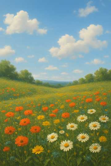 An instrumental piece capturing a wildflower’s brief bloom beneath the stars, No beat or loop, Let rhythm come from breath, gesture, and natural motion, Use harp as the lead: flowing arpeggios in irregular phrasing, like petals in wind, Low cello provides soft gravity—long, gliding tones (no bowing melody), Add violin harmonics or glockenspiel for subtle flickers, like starlight, Include ambient textures: wind shimmer, water breath, leaf rustle—never overpowering, Structure: