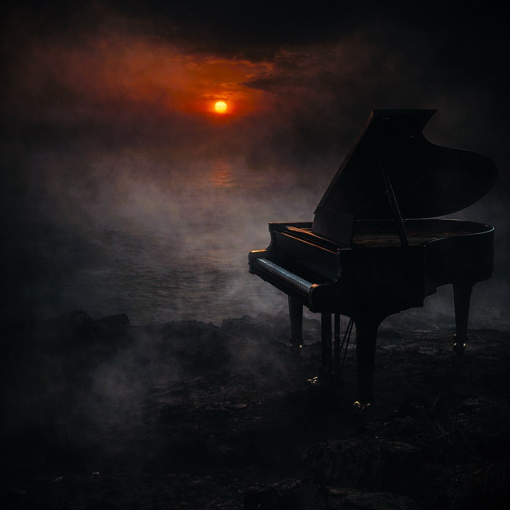 A 58 BPM neoclassical cinematic ambient piece starts with deep, resonant piano and sparse glassy textures, joined by a haunting cello melody, Verses gently layer piano and cello beneath subtle vocals, The interlude highlights solo cello, rising harp, swelling pads, and distant taiko, The bridge and climax build intensity with lush choir, deep bass, and wide stereo space, The closing verse returns to intimate piano, cello, and textures, fading with ethereal ambience