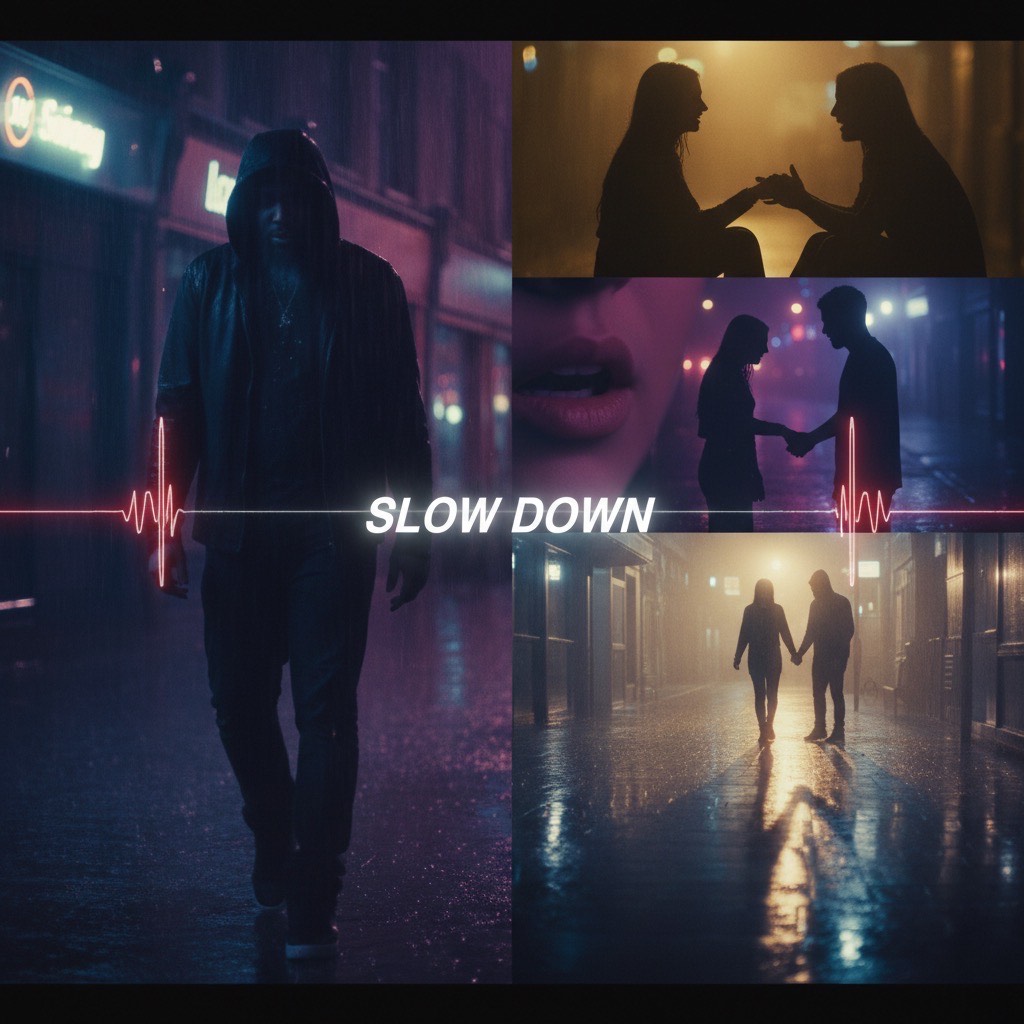 A liquid drum & bass track with jungle breakbeats and deep rolling sub-bass, Fast, crisp drums with a smooth, emotional R&B-style vocal on top, The contrast between high-speed rhythm and vulnerable vocals creates a feeling of mixed emotions—hope, regret, longing, and release, Atmospheric pads, filtered synths, subtle reese bass, and evolving textures, Feels like movement through the night, emotions catching up while life keeps speeding forward, Drums: