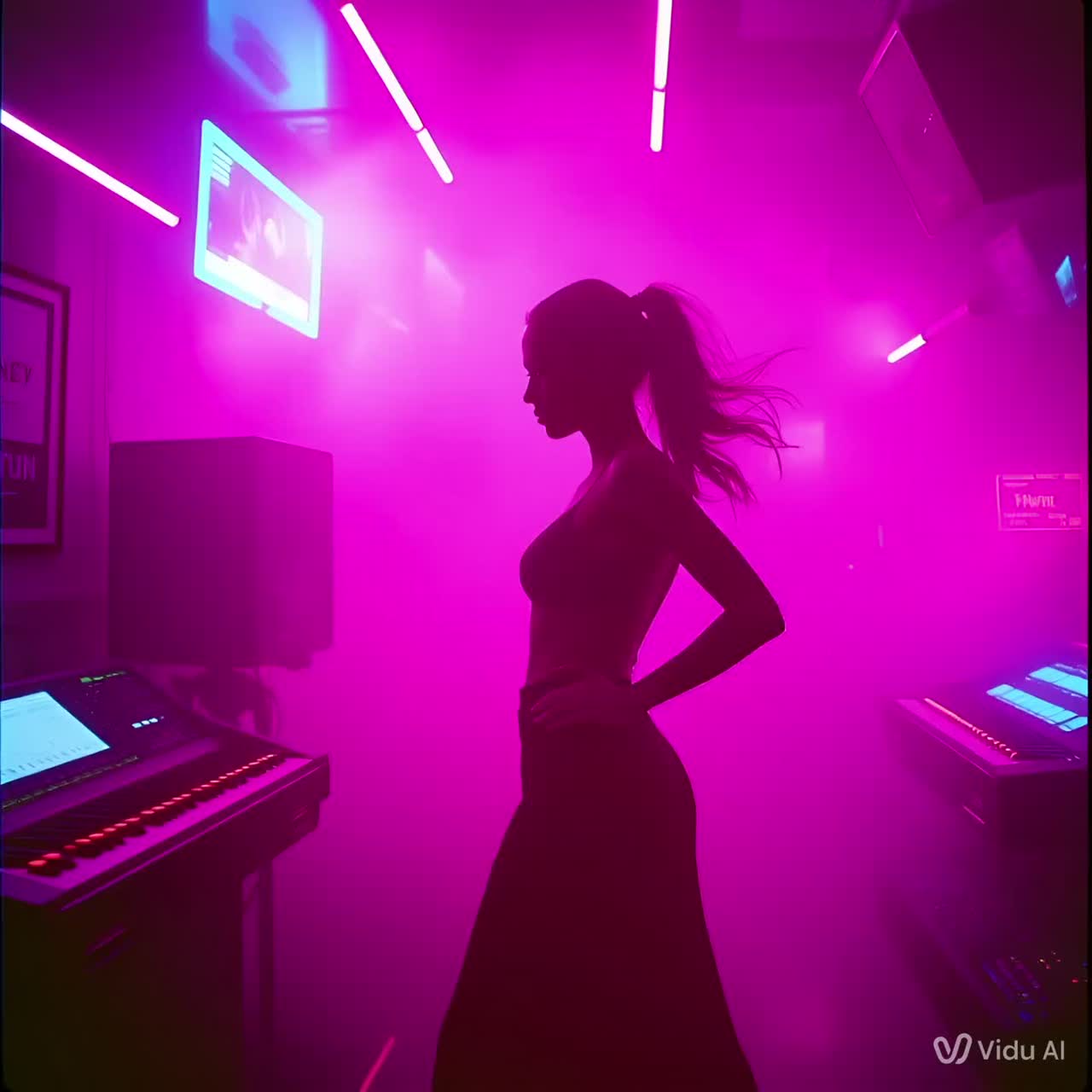 Art-punk indie EBM extended 12″ mix, Cold, restrained, mechanical, dancefloor-driven, Emotional tension without release, Club energy, Fast, steady club tempo 135 BPM, Digeridoo adds texture, Swirling hi-hats and constant forward motion, Subtraction and re-entry on the groove, Dominant melodic synth bass with heavy saturation, Crisp analog drum machine, Minimalist arpeggiated aggrotech synths and short, stabbing chords, Sparse clean post-punk electric guitar used rhythmically, Emphasis on repetition and evolution, Female art-punk vocal, emotionally restrained, slightly detached, half-sung, half-spoken, Flat delivery, minimal vibrato, Vocals function rhythmically and can be looped, echoed, filtered, and dropped in and out, Overall feel is cool, obsessive, functional, and hypnotic
