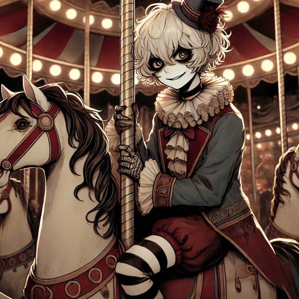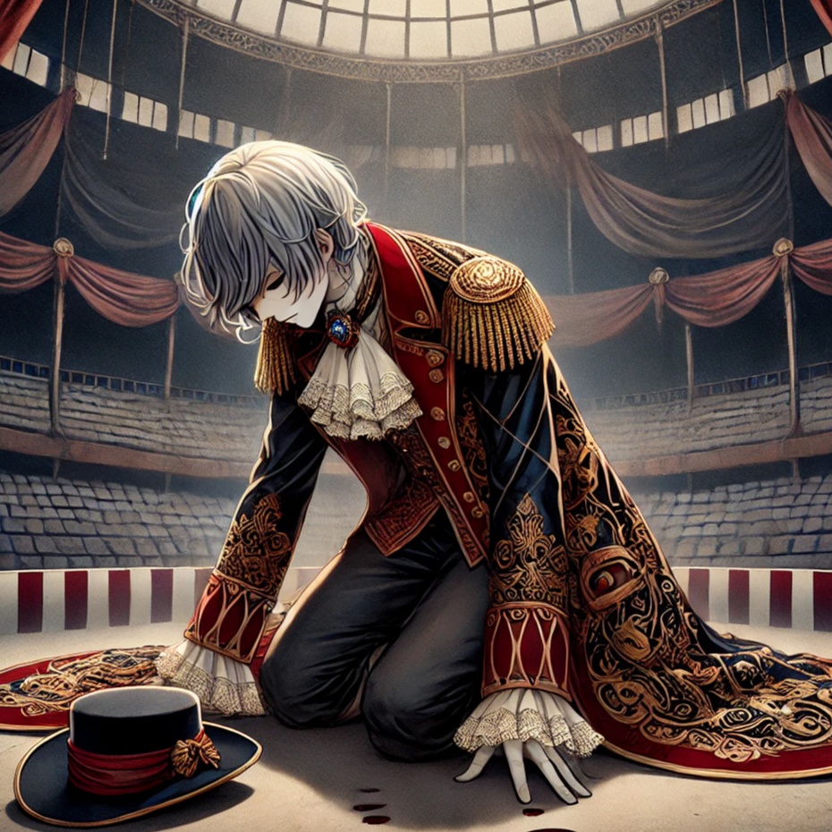 Male vocal, melancholic, dark, angry, villainous dubstep rock, dark cabaret, circus