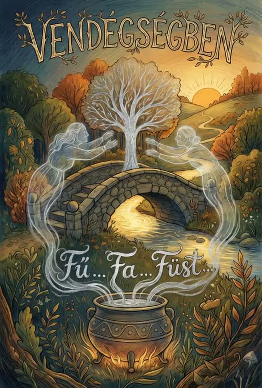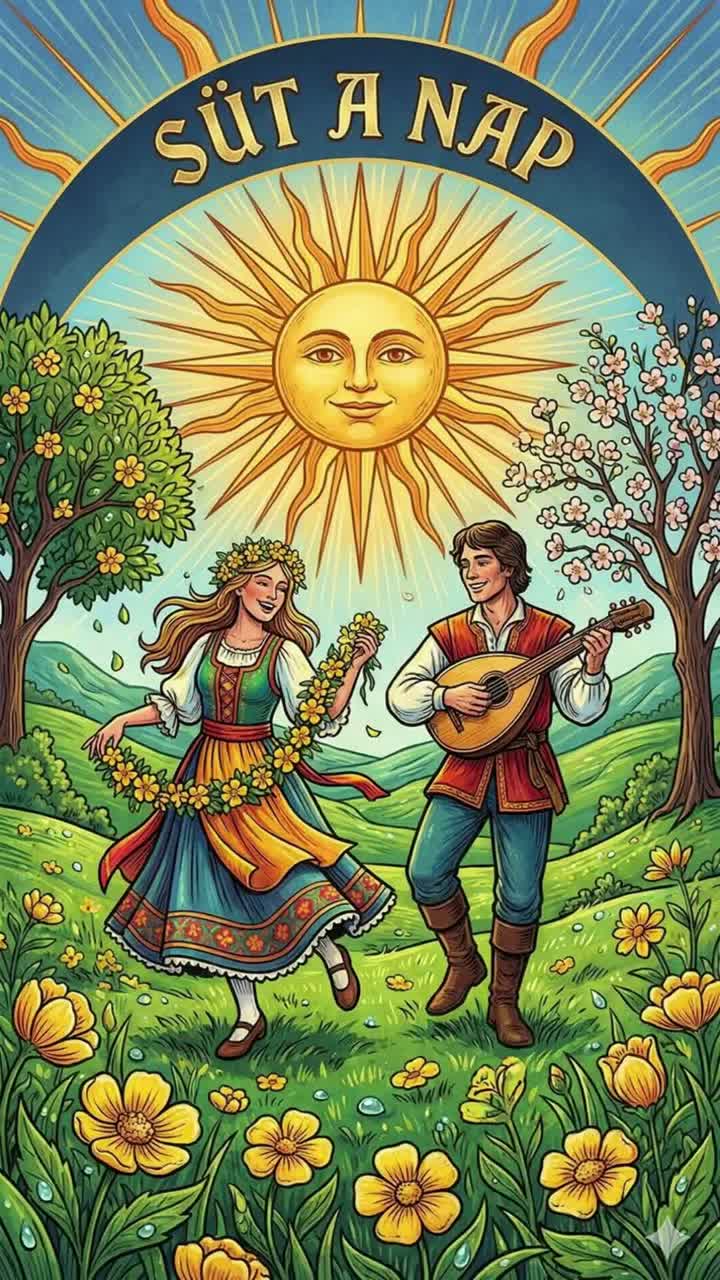 Uplifting ethno-electronic, sunny trip-hop, warm analog synths, bright acoustic guitar, chillout dub, Hungarian folk female vocals, breezy atmosphere, 100 BPM, melodic bassline
